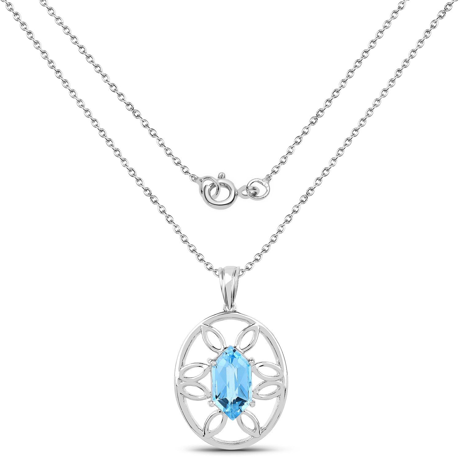 This pendant features a beautiful Swiss Blue Topaz, celebrated for its bright, vibrant blue hue and captivating sparkle. Its natural beauty is complemented by the classic, elegant design of the sterling silver setting, ensuring it pairs perfectly with any outfit.