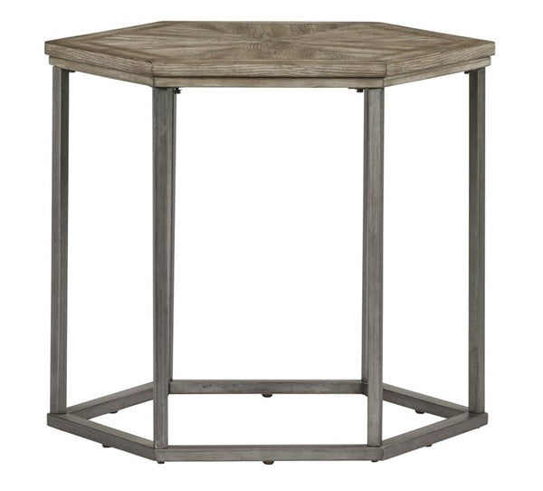 Bring a stylish blend of bohemian charm and contemporary flair to your home with the Adison Cove Ash Blonde Hexagon End Table. This striking table features close-grain ash veneers in a natural ash blonde finish, paired with a dark gray gunmetal metal frame for a sleek, modern aesthetic. The unique hexagonal shape adds a touch of playfulness, allowing you to showcase your personal bohemian style in any room. Perfect for creating a bold statement while maintaining a sophisticated boho look.