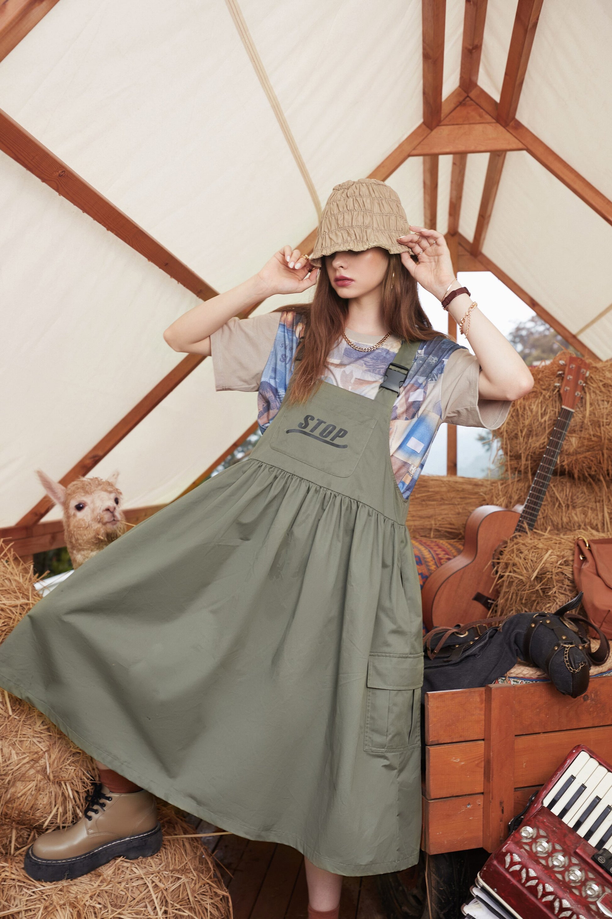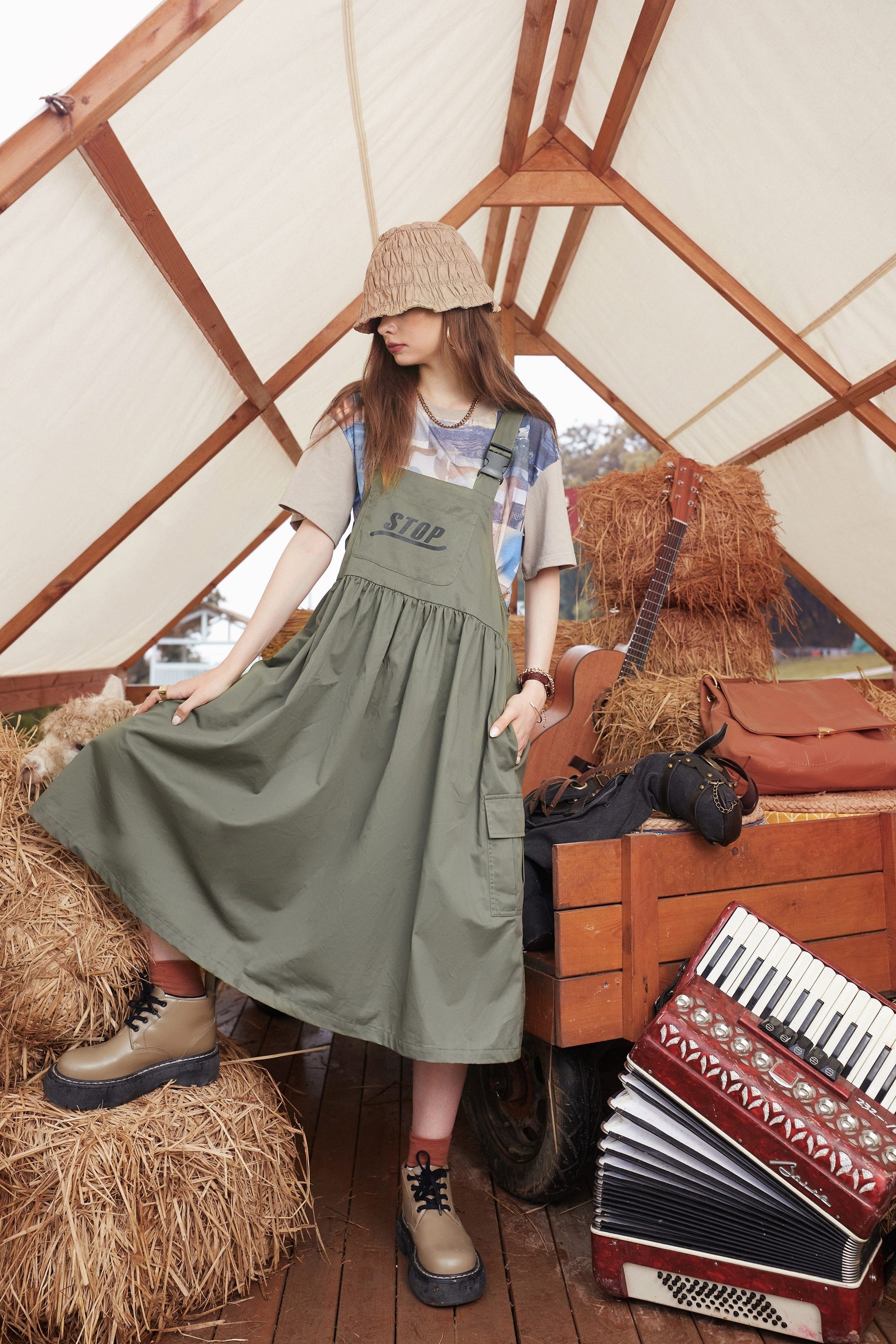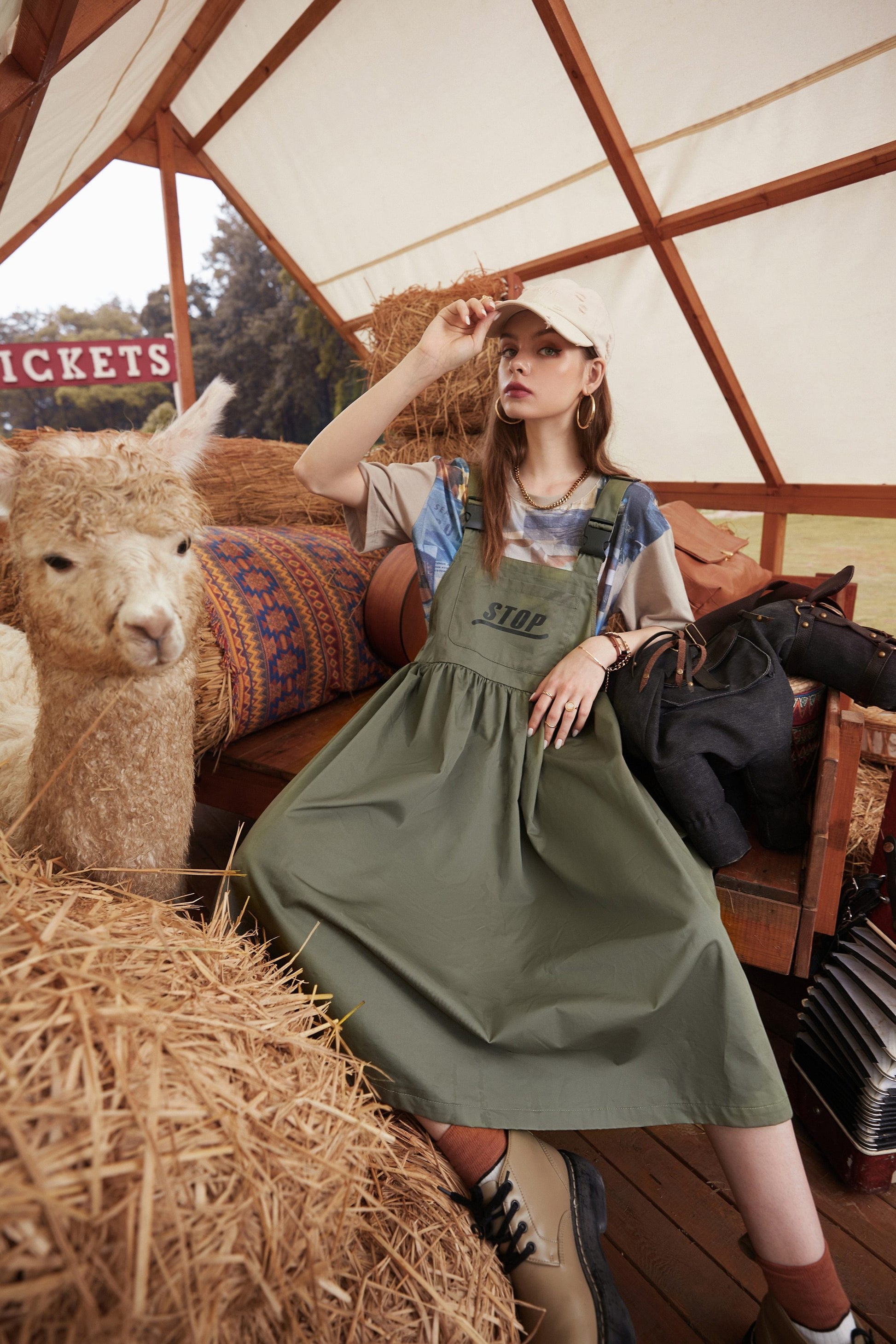 Channel carefree boho vibes with our Army Green Vintage Overall Dress, a sleeveless, mid-calf length stunner that blends safari-inspired utility with bohemian ease. Designed for the free-spirited woman, this A-line dress features a structured square collar, short sleeves, and a pullover silhouette that exudes effortless cool. Made from breathable viscose-polyester blend, it’s perfect for transitional seasons—layer it over a crochet bralette for summer festivals or pair it with ankle boots for autumn adventures.