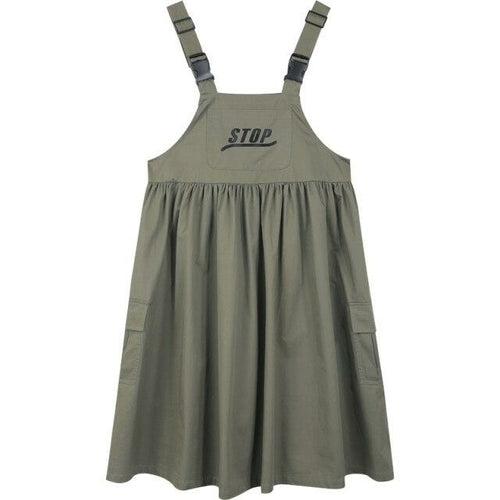 High Waist Casual Vintage Overall Boho Dress – Army Green Safari Chic