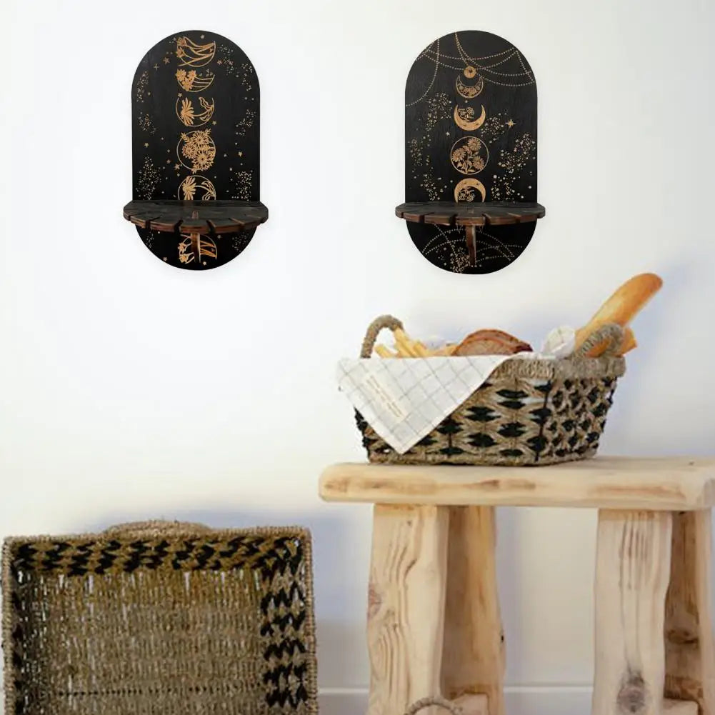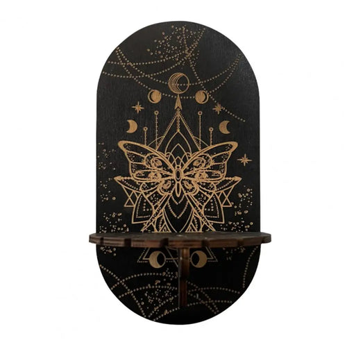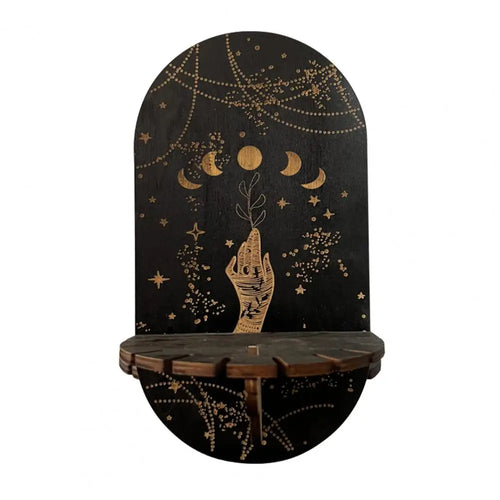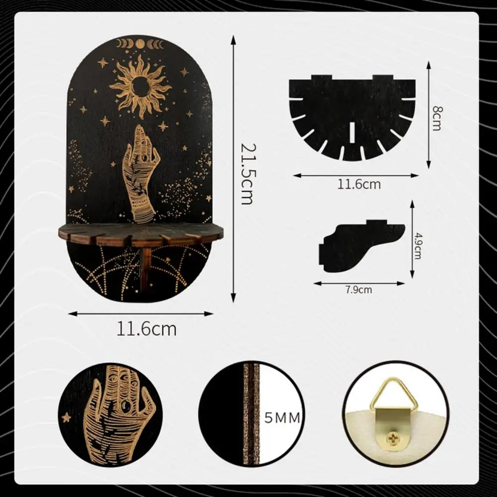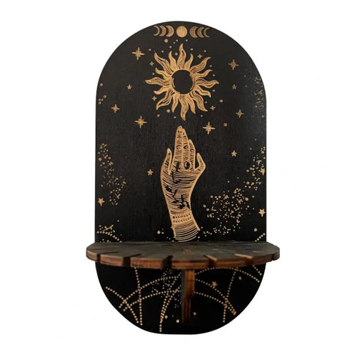 Bring a bohemian touch to your space with this Crystal Display Shelf, designed to hold your crystal stones, candles, and jewelry in a beautifully crafted wooden holder. Featuring bohemian patterns, this display stand is both functional and decorative, adding a unique charm to your home, dorm, or bedroom while keeping your precious items organized.