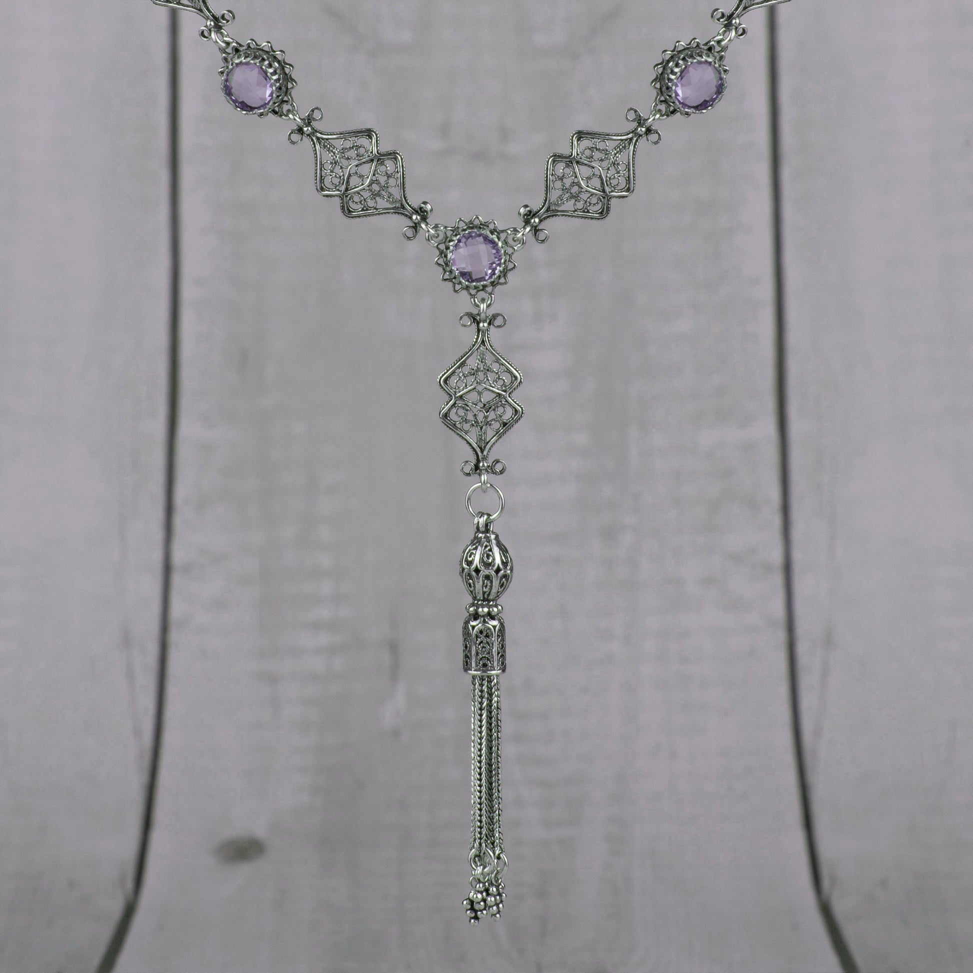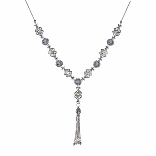 Filigree Art Amethyst / Blue Topaz Tassel Choker Necklace