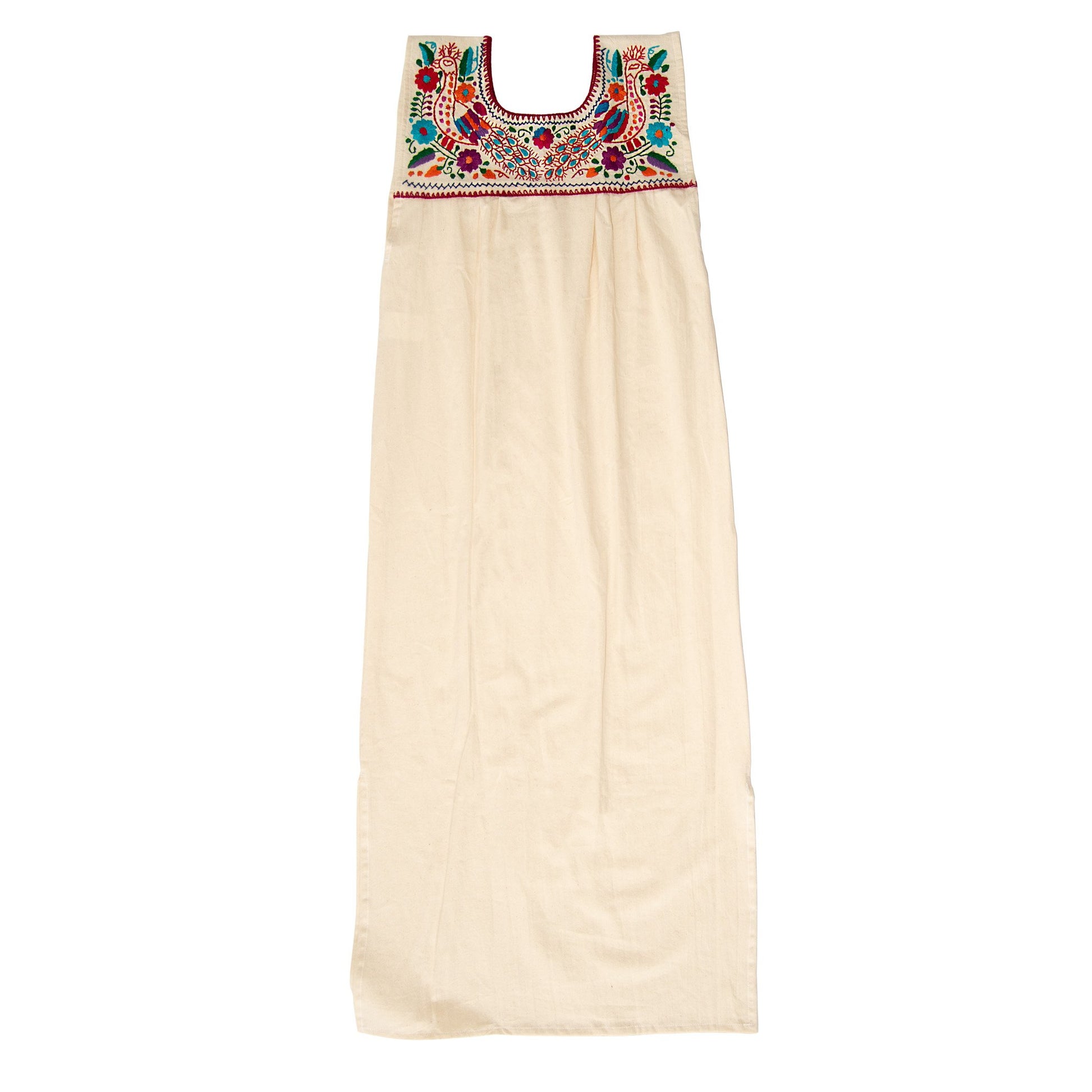 Step into a piece of living heritage with our Maxi Isidra Mexican Embroidered Boho Dress, a stunning white cotton maxi adorned with vibrant, hand-stitched floral motifs. Each dress is a unique work of art, meticulously embroidered over 16 hours by skilled artisans in San Gabriel Chilac, Puebla, using techniques passed down through generations. The loose, flowing silhouette and breathable cotton make it ideal for sunny adventures or layered winter styling, while the intricate embroidery tells a story of cultural pride and craftsmanship.
