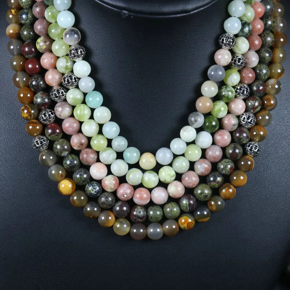 Elevate your spiritual practice and everyday boho style with our exquisite Natural Stone Beads Rosary Necklace. This isn't just another piece of jewelry; it's a handheld meditation, a personal talisman, and a statement of mindful intention. Meticulously crafted from 8mm Bloodstone and Rose Quartz beads, each polished stone feels cool and comforting against the skin. This unique stone necklace is designed for both men and women, making it a beautifully unisex accessory that radiates earthy, bohemian charm. Wear it as a reminder of your inner strength or hold the beads during meditation to focus your energy and find your center.