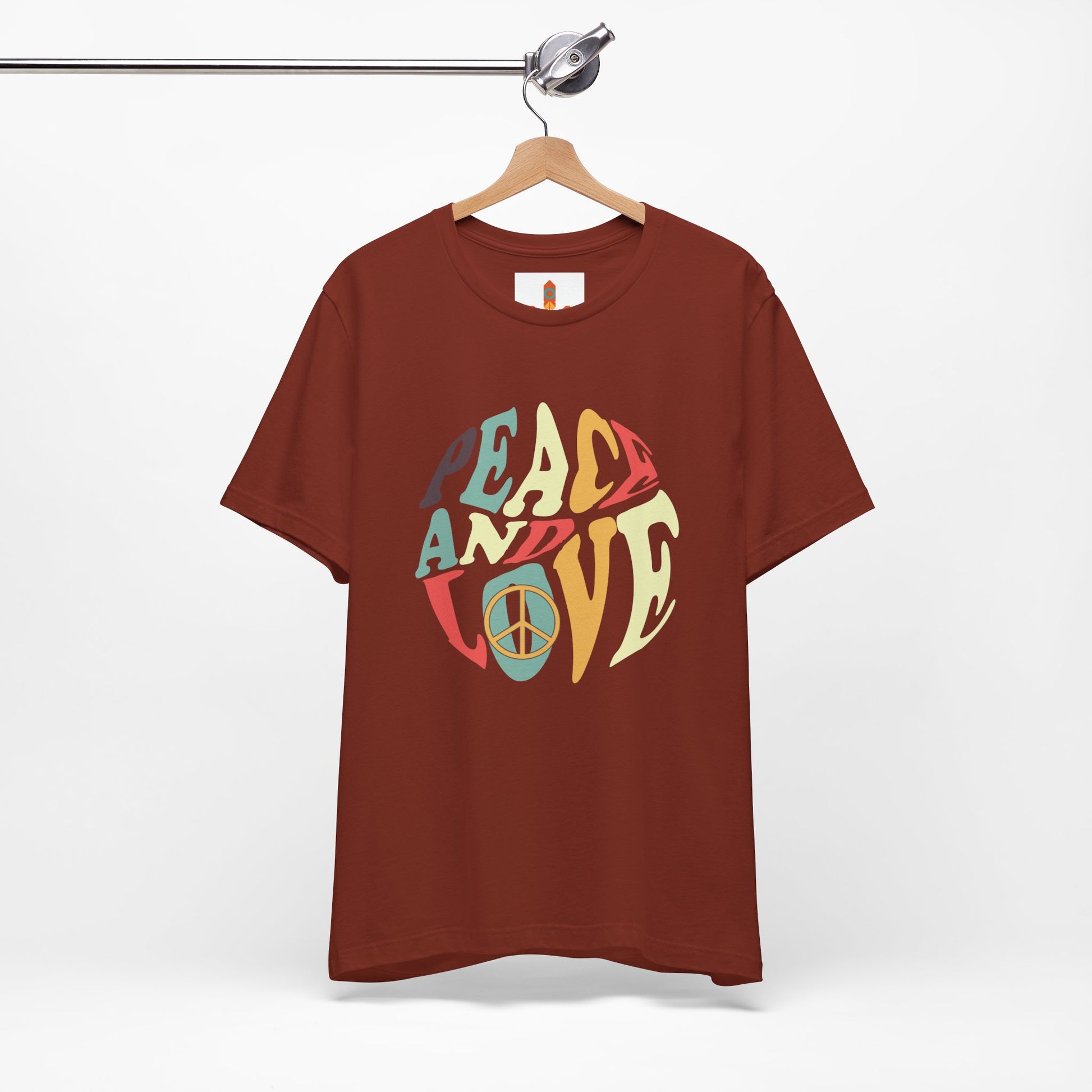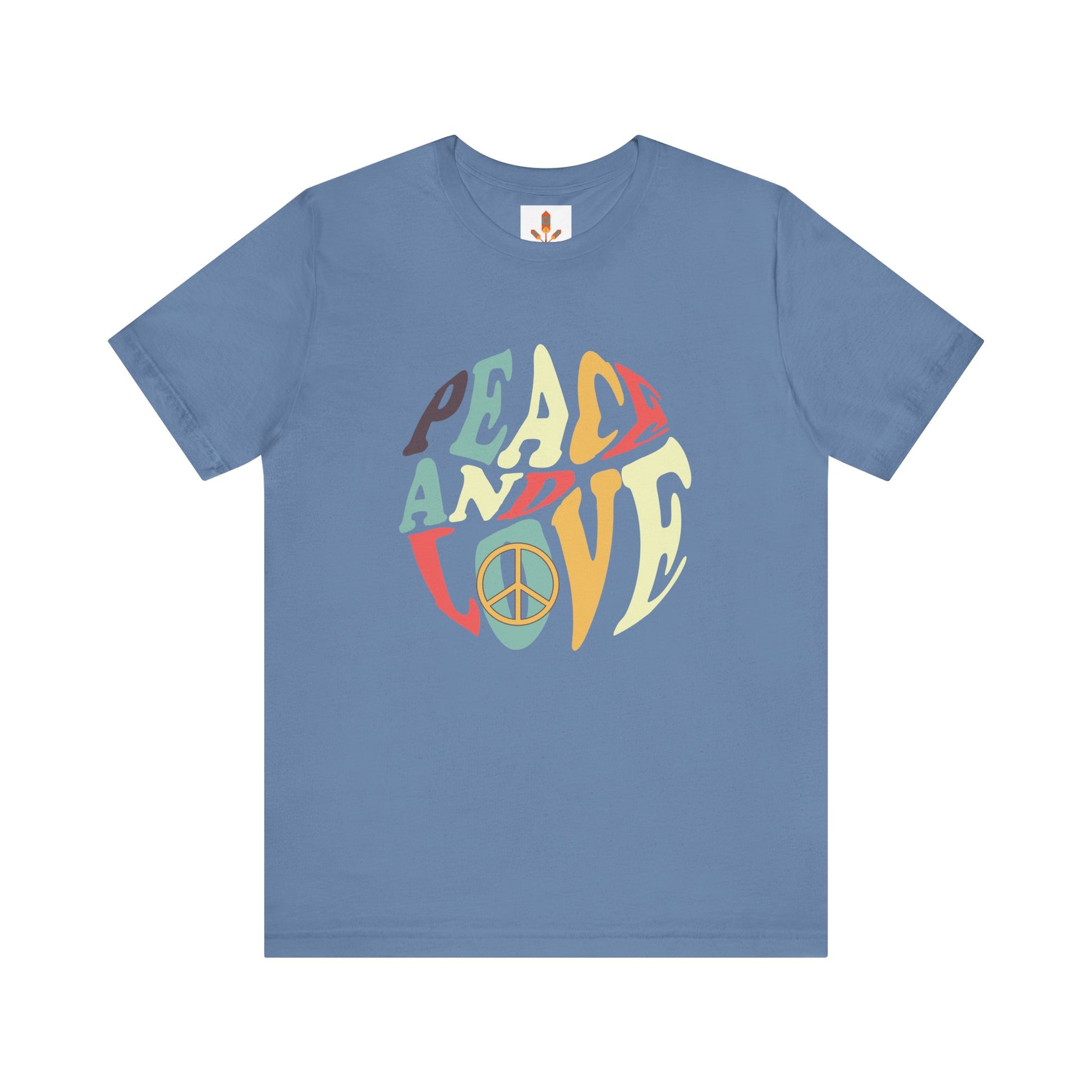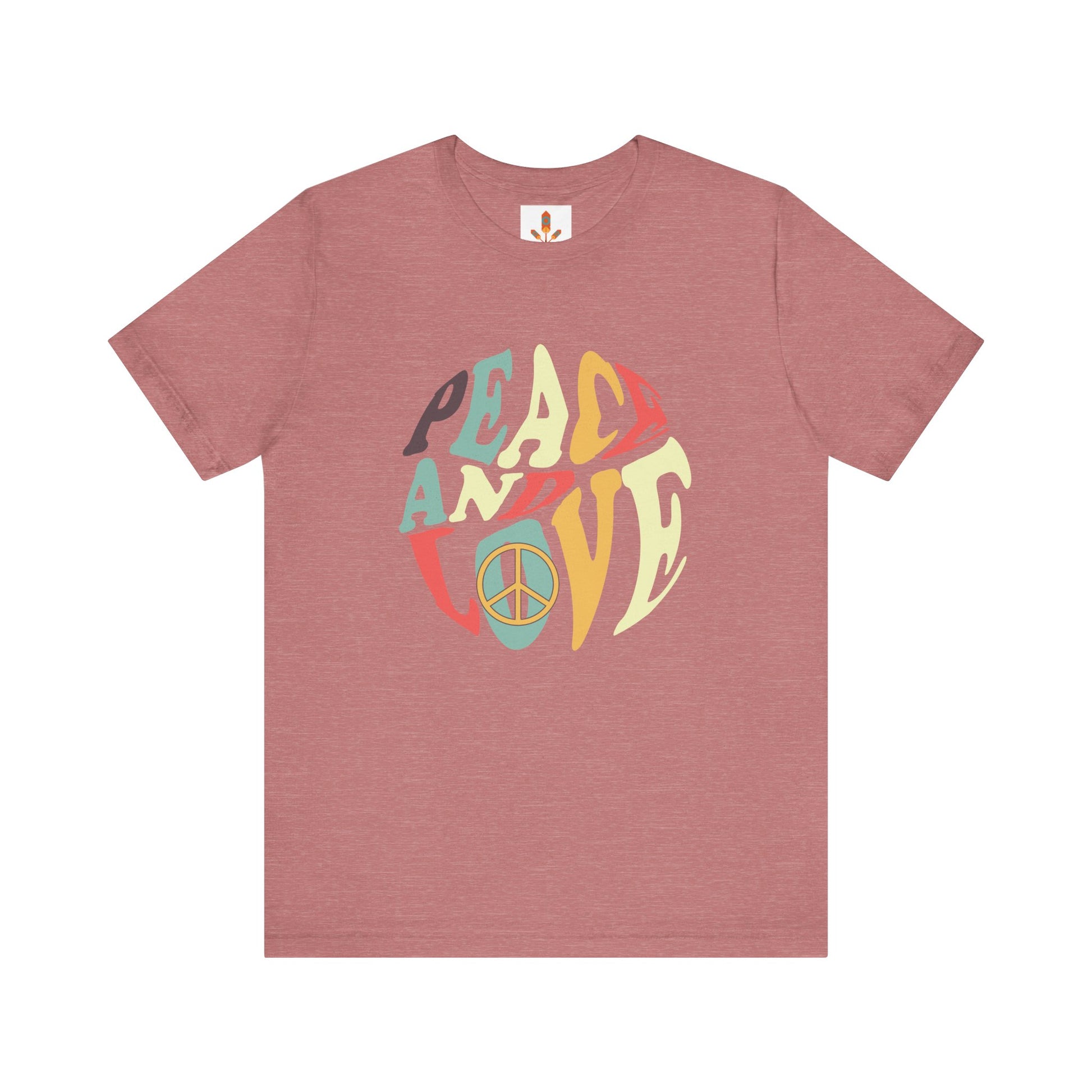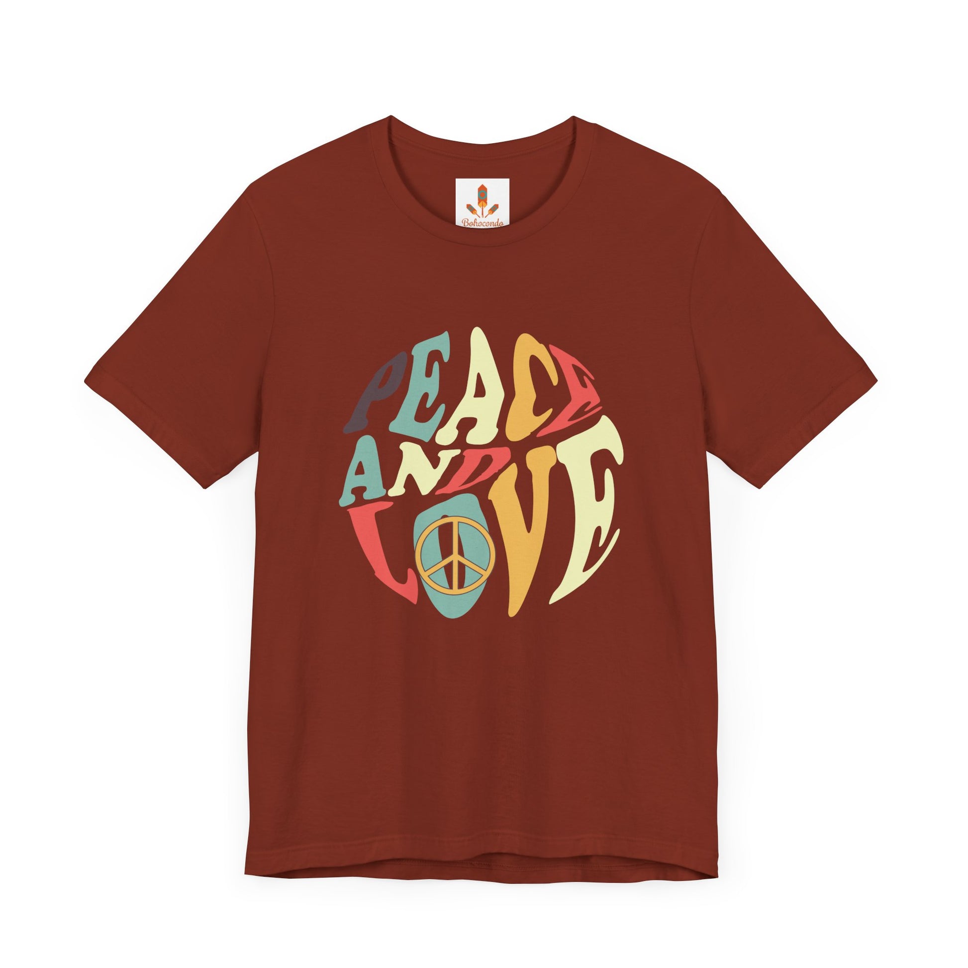 Celebrate the timeless message of harmony with the Peace and Love Design T-shirt, featuring vibrant 60s-style typography and colors that radiate classic boho spirit. This bohemian tee blends retro charm with a positive vibe, making it a must-have for those who cherish peace, love, and free-spirited style. Perfect for festivals, casual outings, or meditation, this boho shirt channels the essence of the ‘60s peace movement in a modern, wearable form.