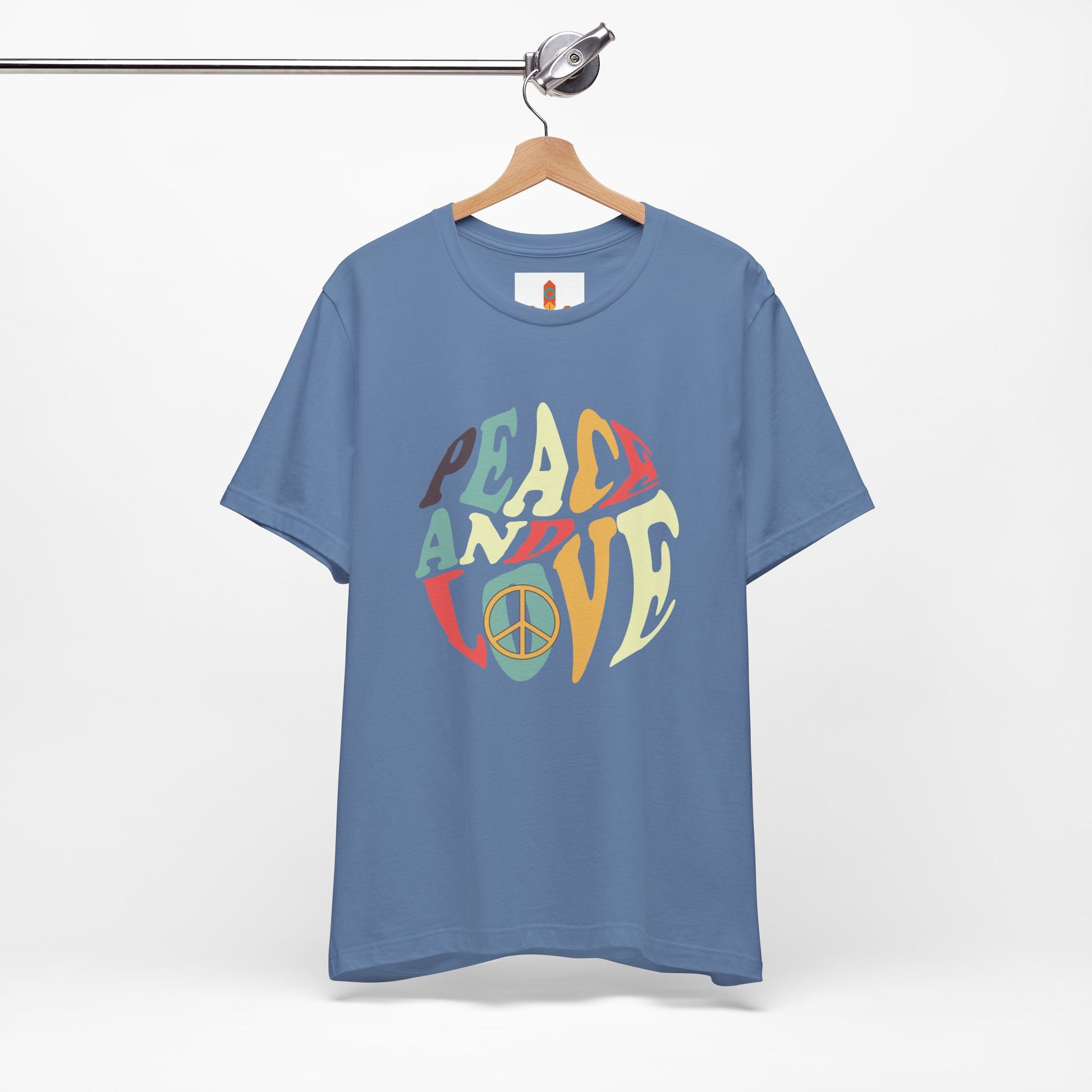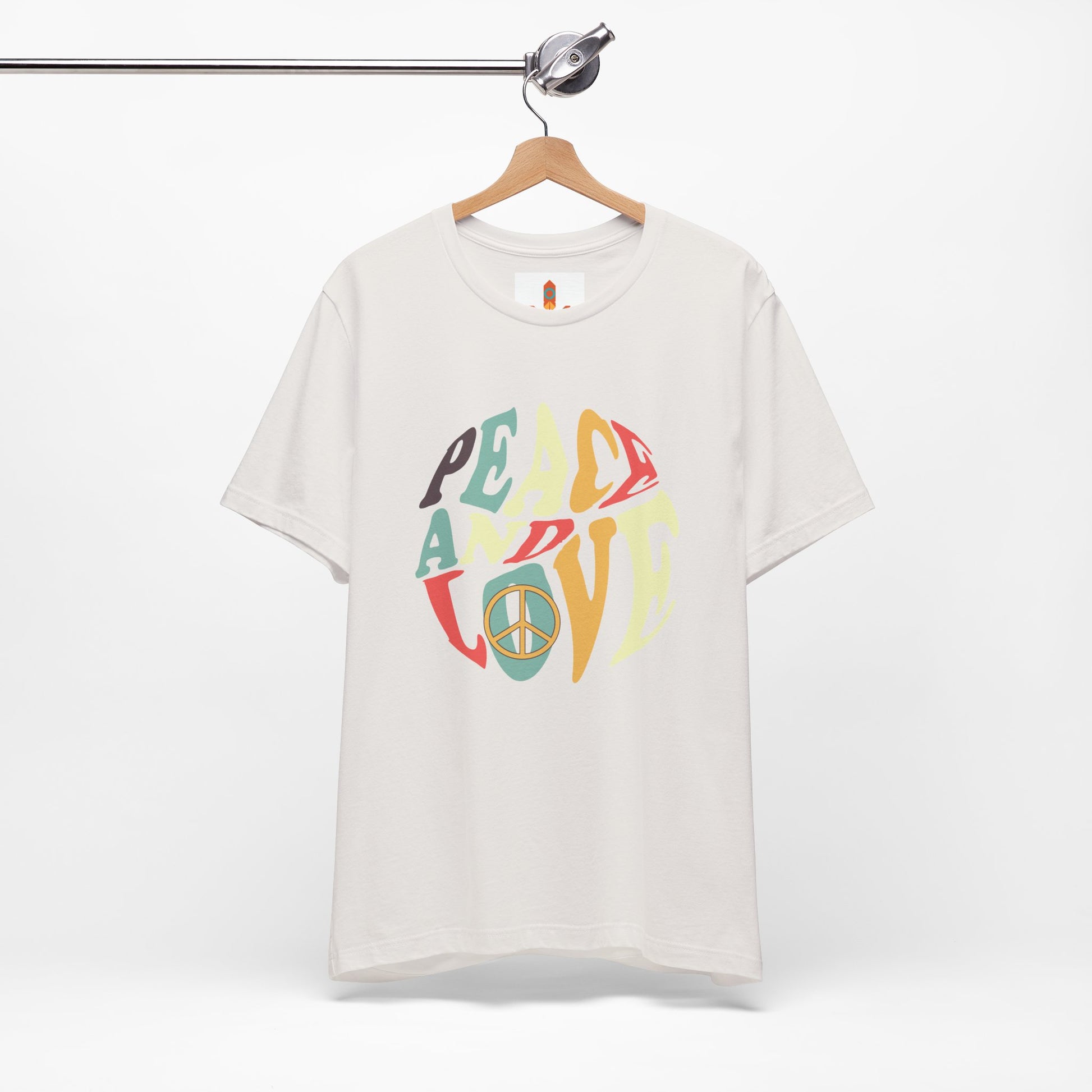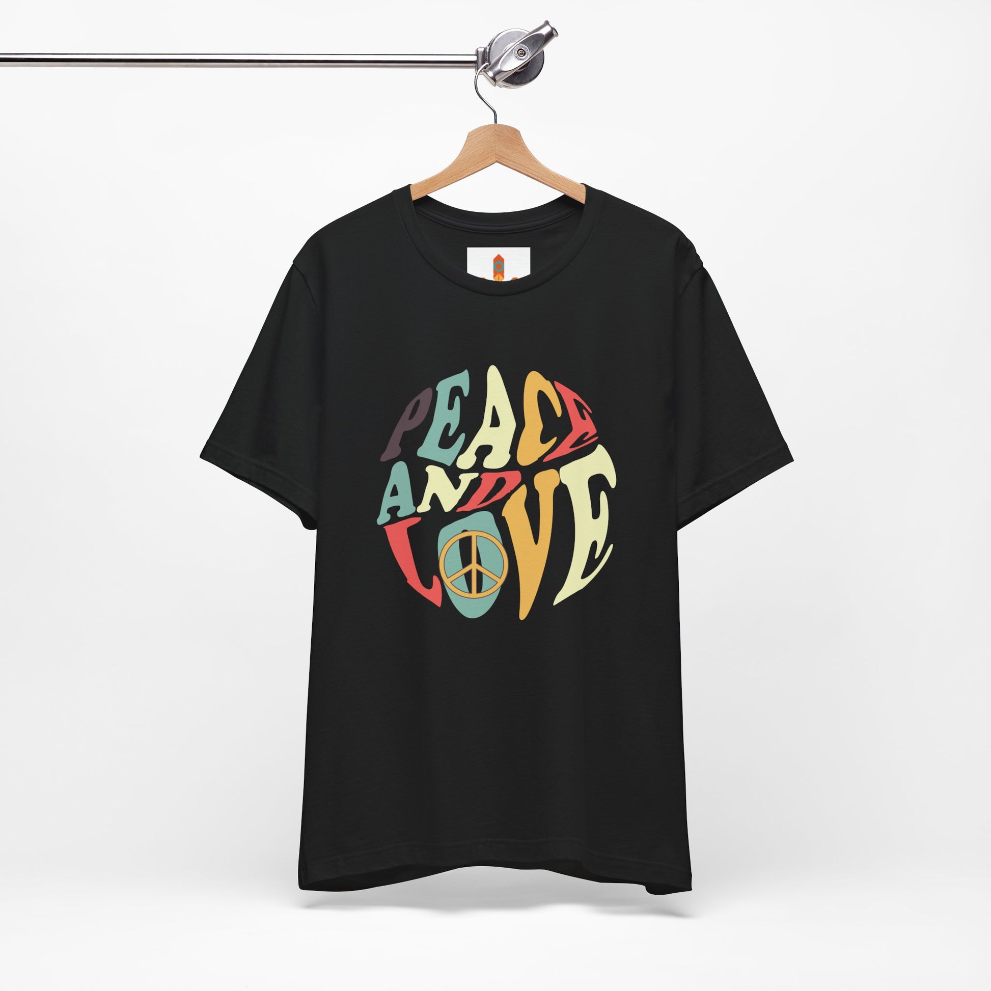 Celebrate the timeless message of harmony with the Peace and Love Design T-shirt, featuring vibrant 60s-style typography and colors that radiate classic boho spirit. This bohemian tee blends retro charm with a positive vibe, making it a must-have for those who cherish peace, love, and free-spirited style. Perfect for festivals, casual outings, or meditation, this boho shirt channels the essence of the ‘60s peace movement in a modern, wearable form.