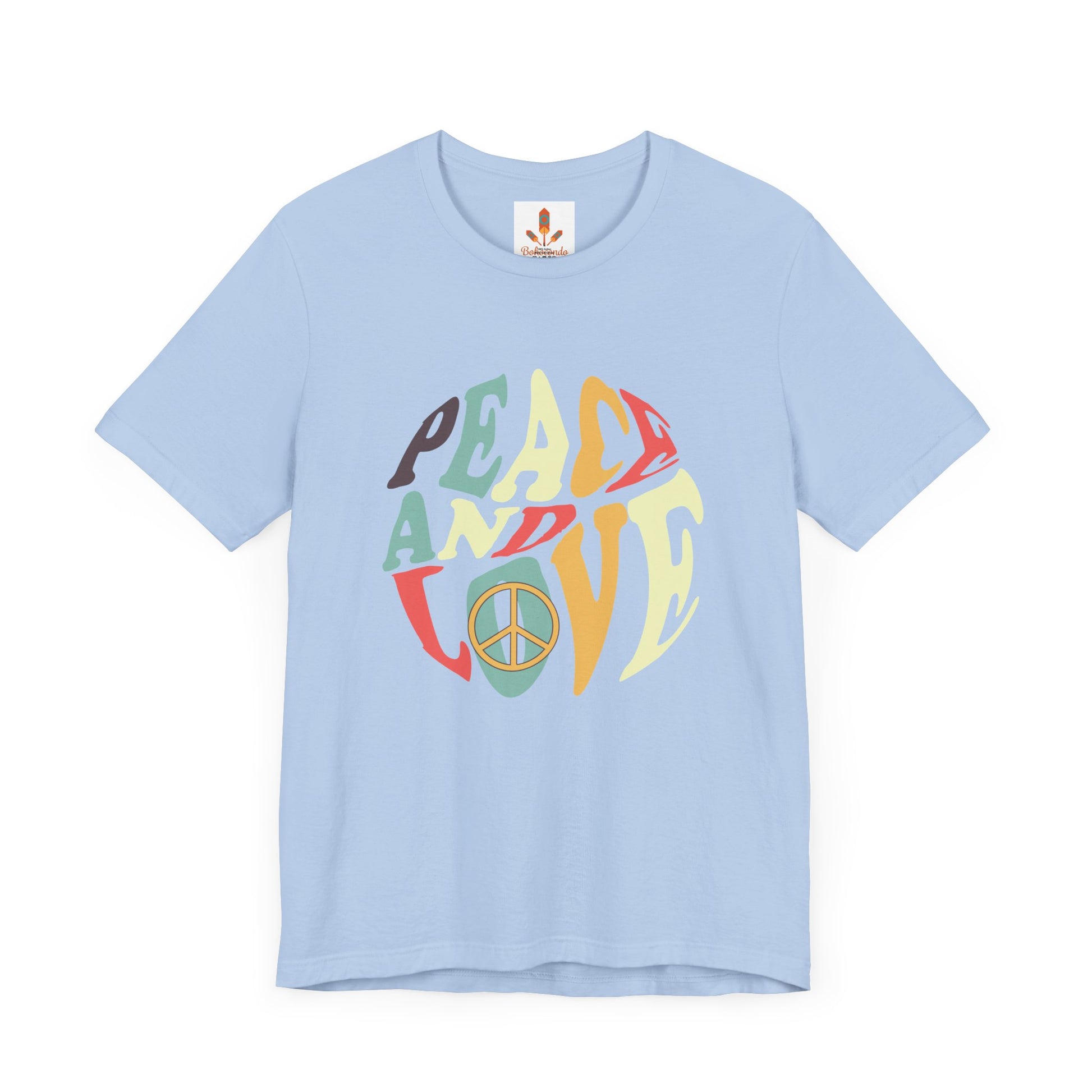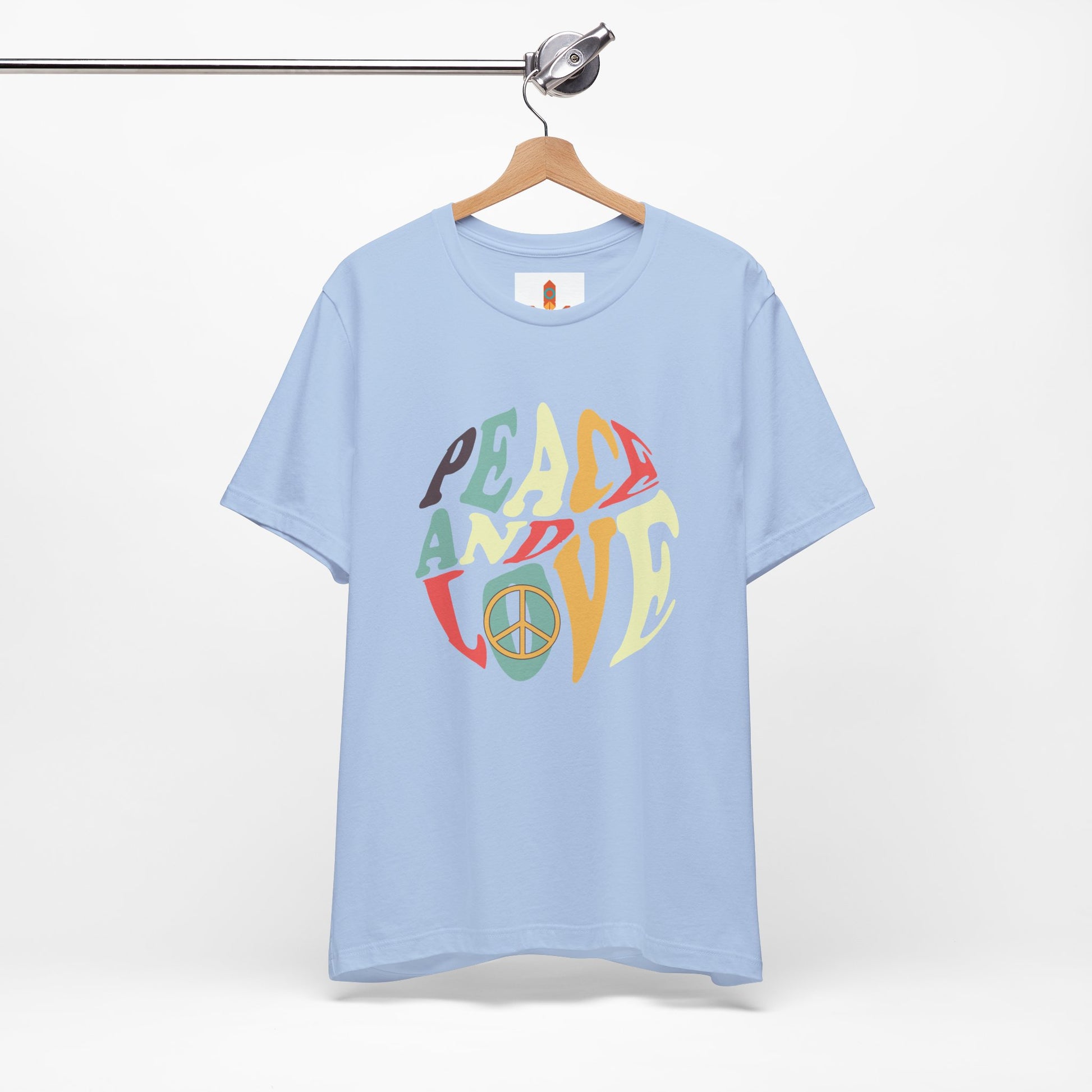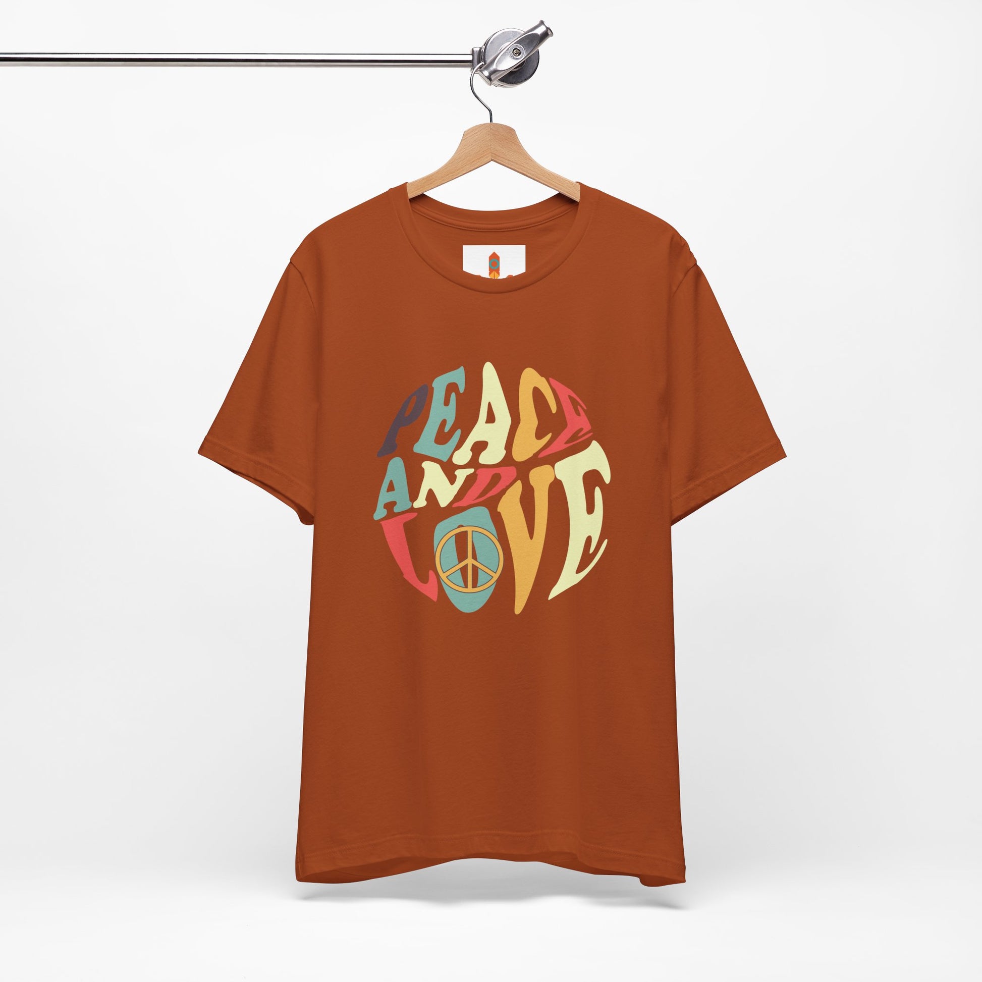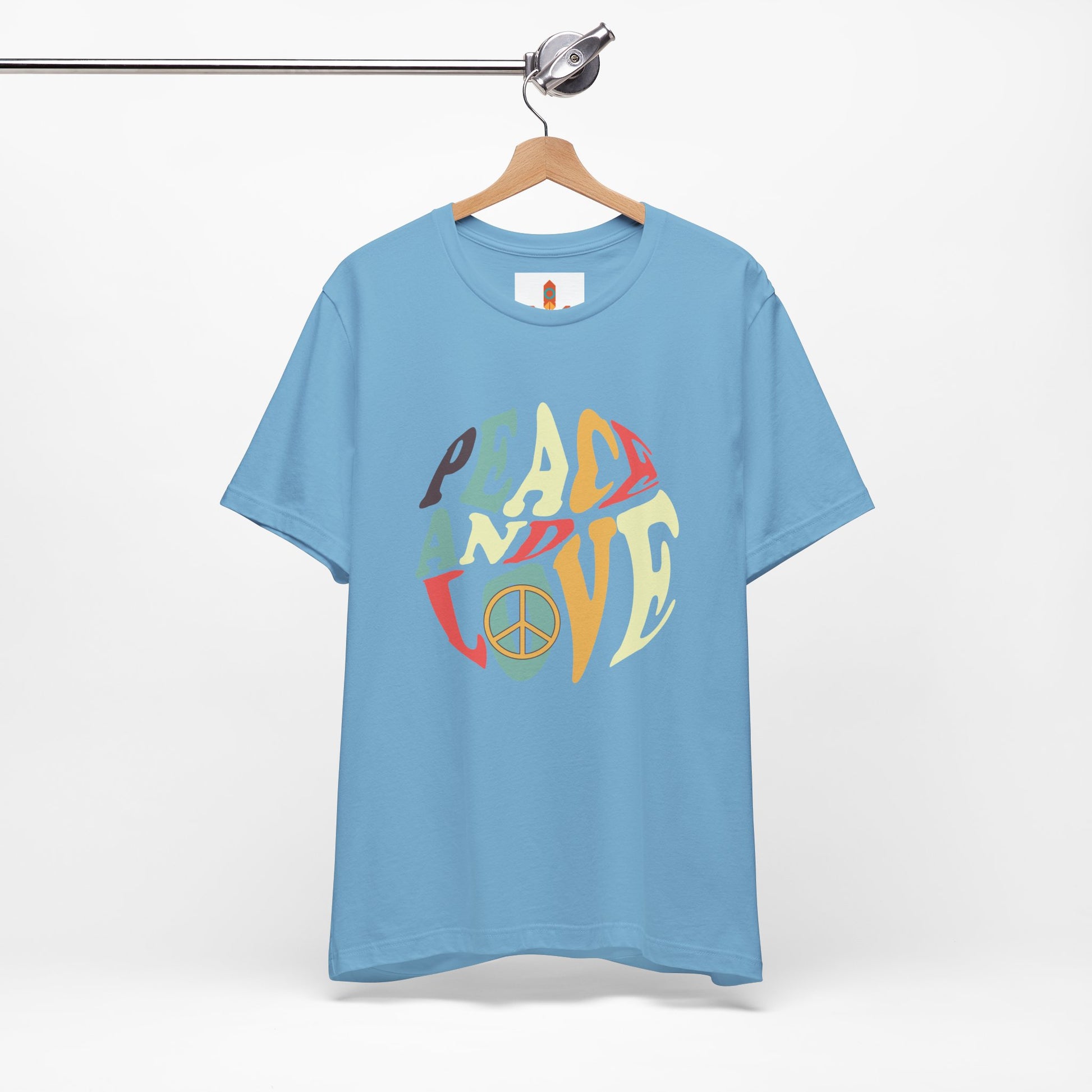 Celebrate the timeless message of harmony with the Peace and Love Design T-shirt, featuring vibrant 60s-style typography and colors that radiate classic boho spirit. This bohemian tee blends retro charm with a positive vibe, making it a must-have for those who cherish peace, love, and free-spirited style. Perfect for festivals, casual outings, or meditation, this boho shirt channels the essence of the ‘60s peace movement in a modern, wearable form.