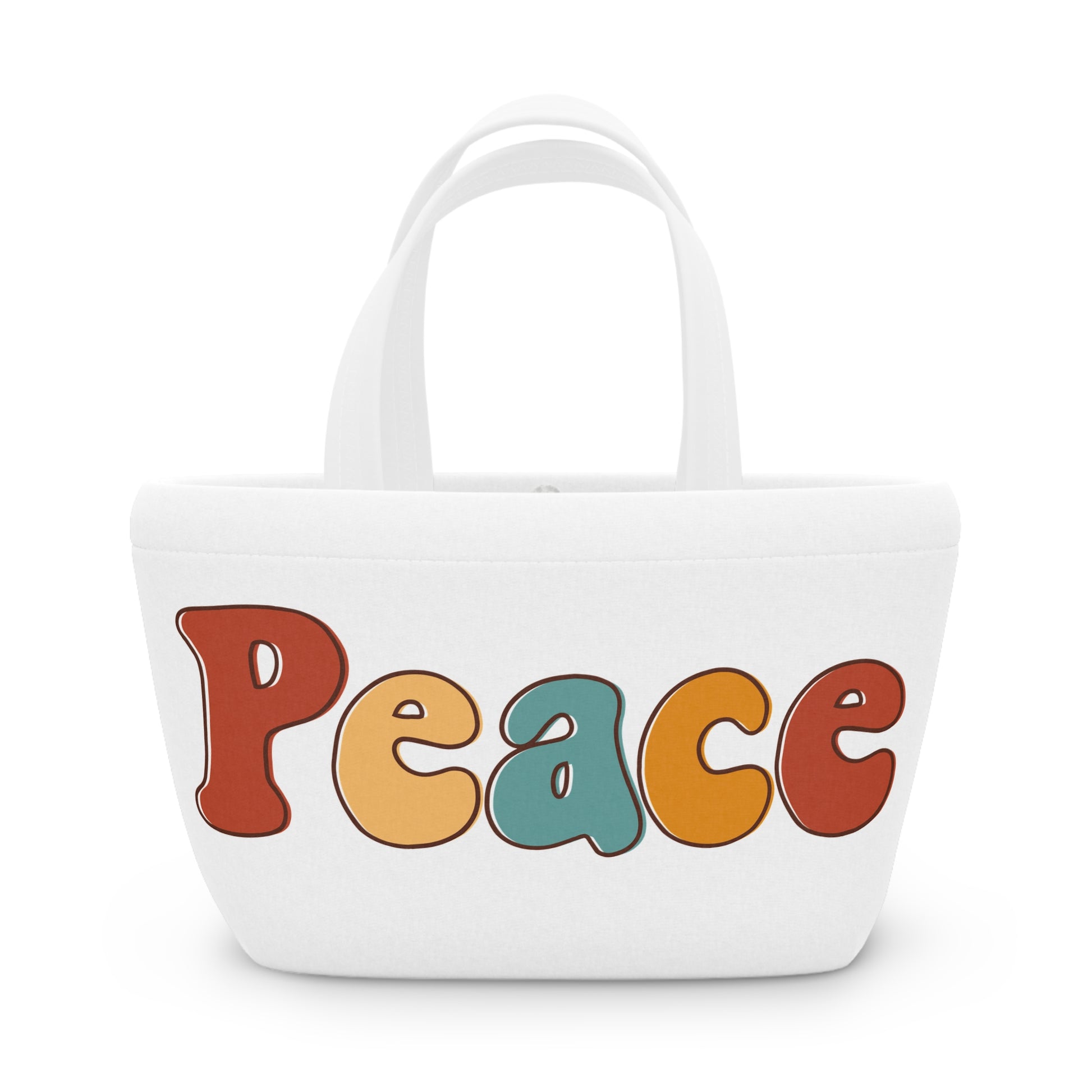 Let your inner flower child shine with the Peace Boho Lunch Bag, featuring a bold, 60s-inspired Peace typography design. Styled in groovy, retro lettering, this boho bag channels the carefree energy of the era of love, music, and self-expression. Whether you're off to work, a picnic in the park, or just feeling nostalgic, this bag brings a splash of bohemian charm and a whole lot of positive energy to your day.