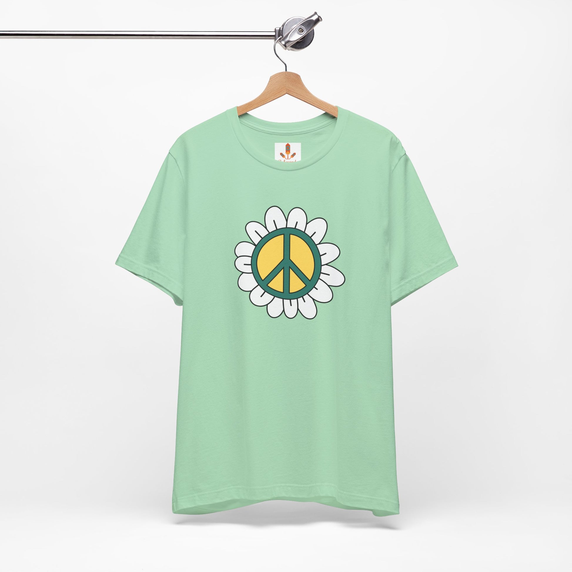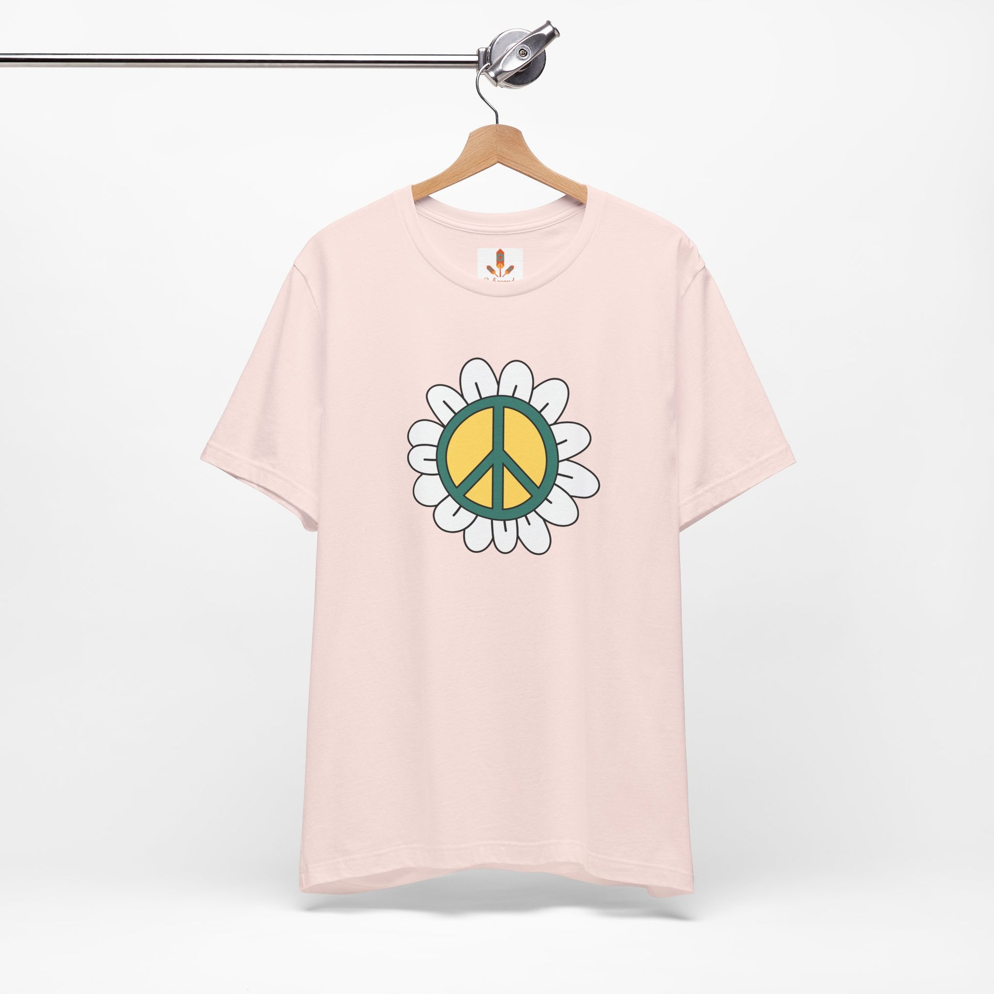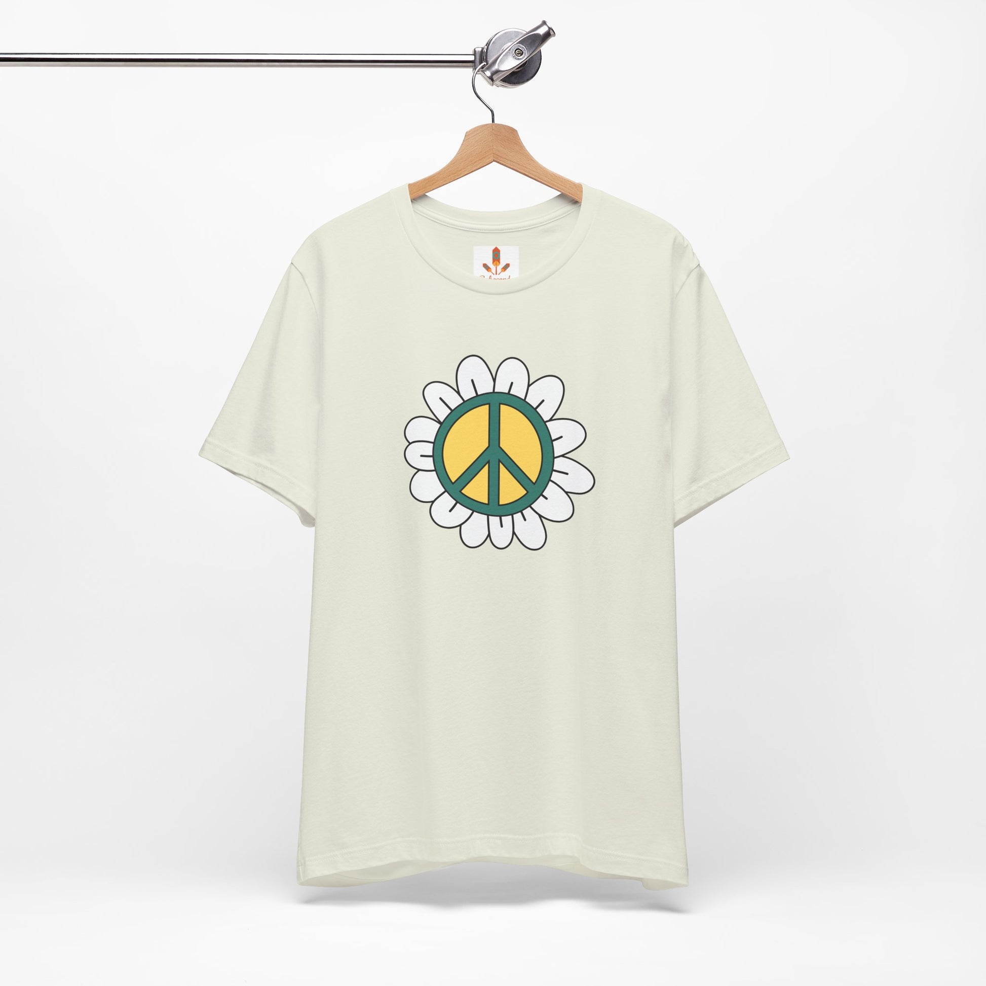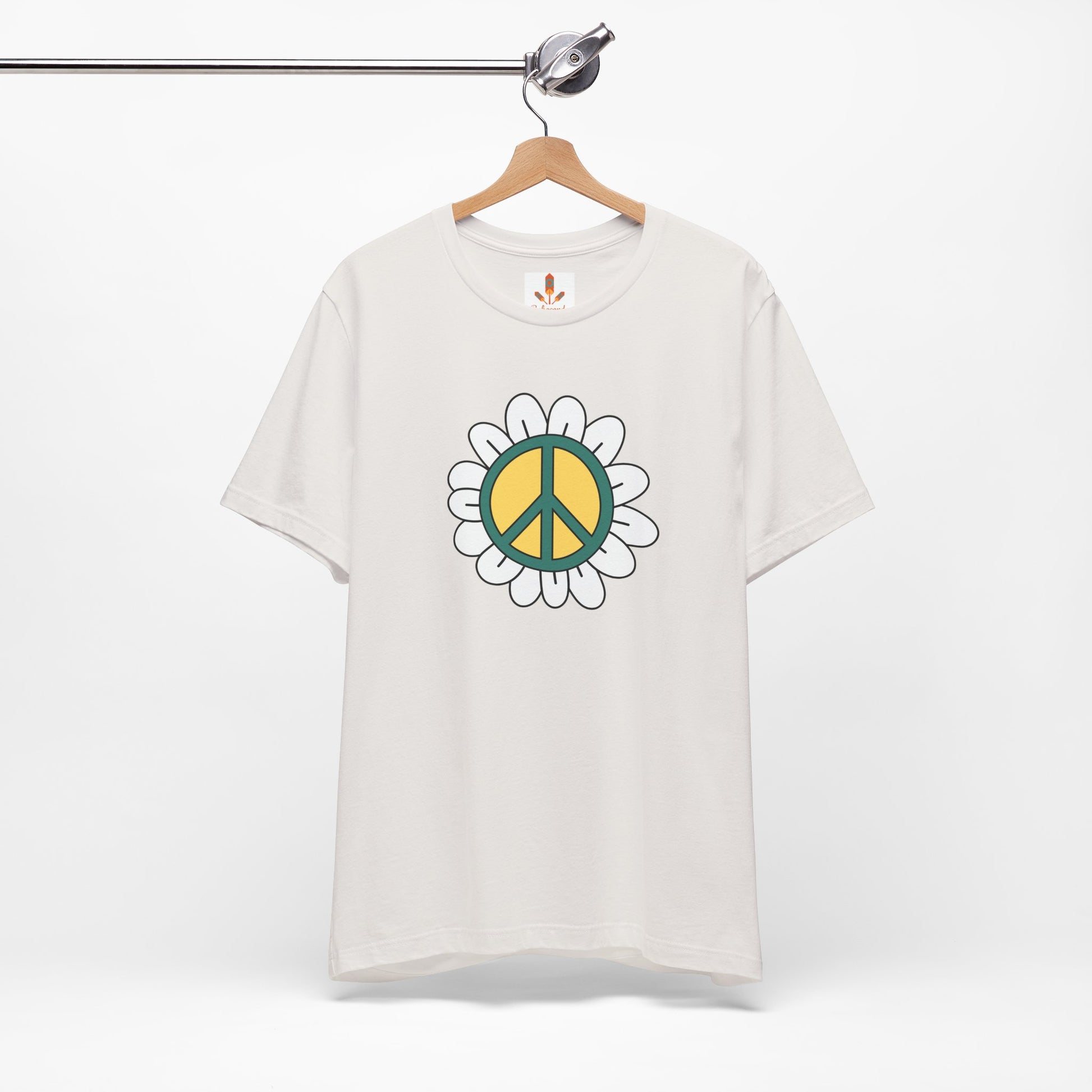 Channel peace, purity, and natural beauty with the Peace Sign in White Flower T-shirt. This serene boho-style tee features a delicate white floral design that forms a peace symbol—perfect for free spirits and flower lovers alike. Subtle yet powerful, it’s an ideal choice for expressing harmony and gentle strength through wearable art.