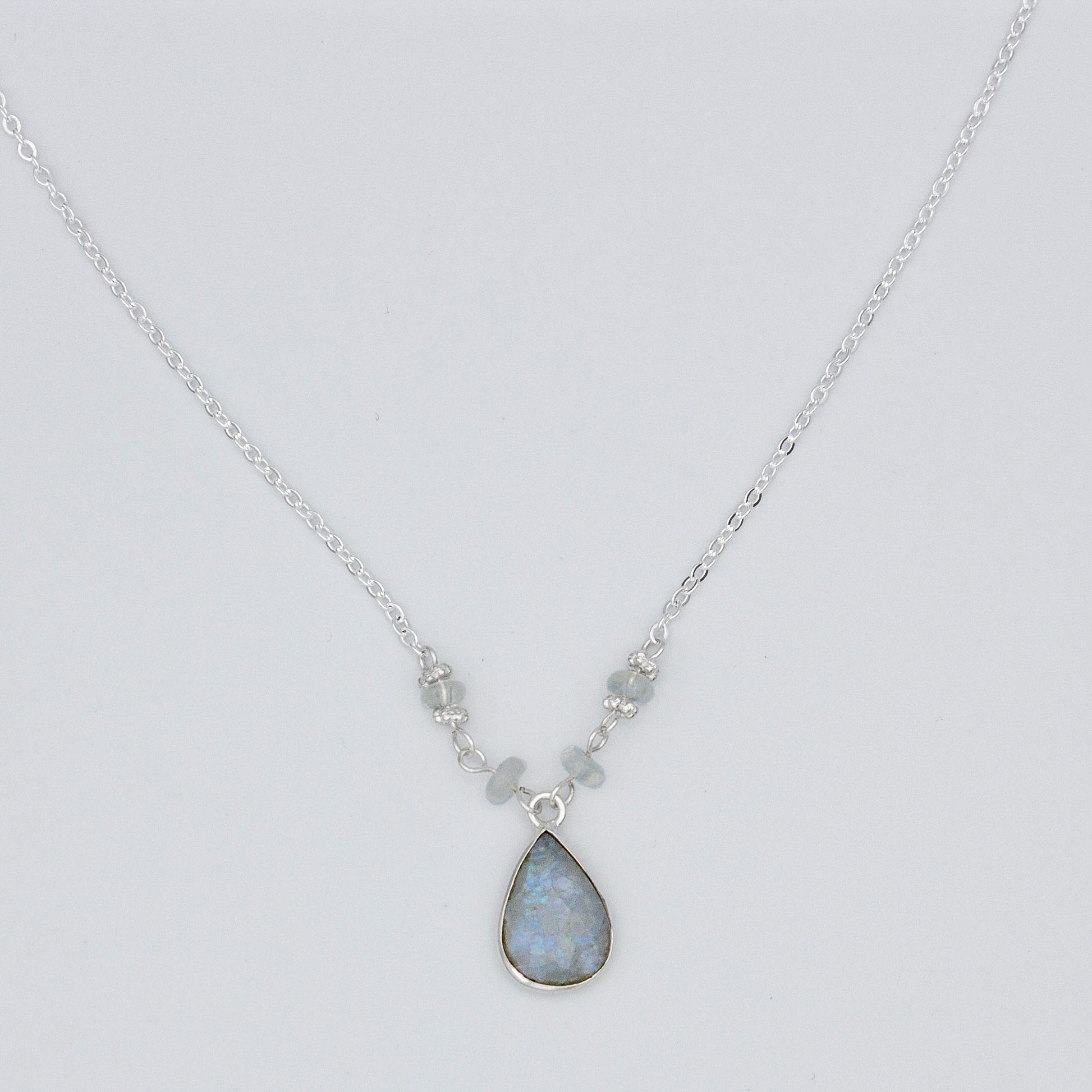 Rainbow Moonstone Beaded Teardrop Pendant Necklace