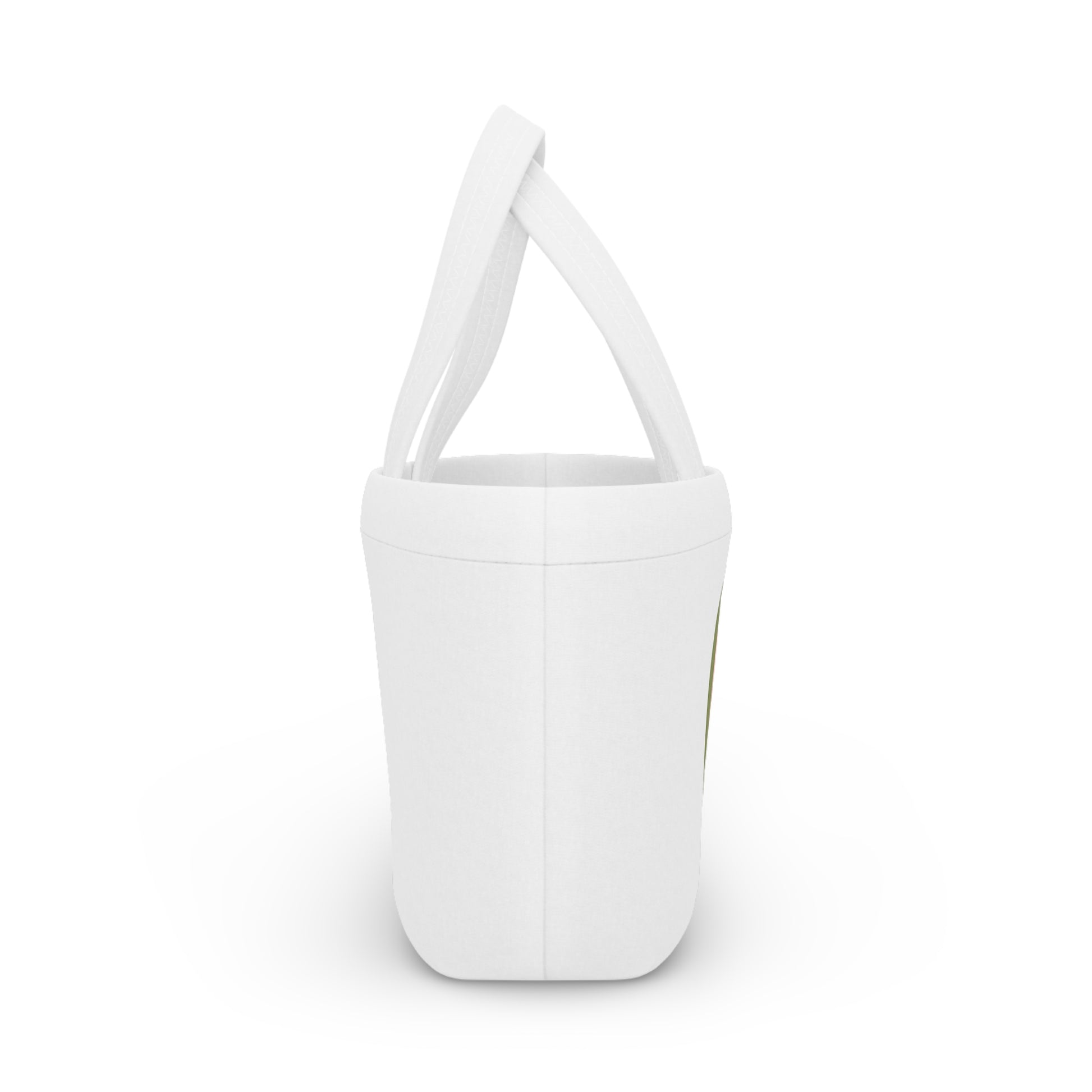 Made from 100% neoprene (95% polyester, 5% spandex), this soft yet durable boho bag offers a spacious interior to hold your meals and essentials securely. The bright retro design stands out against the crisp white base, complemented by your choice of black or white double handles. Its curved shape and flat bottom protect your food from being squished while keeping your style fresh and fun.