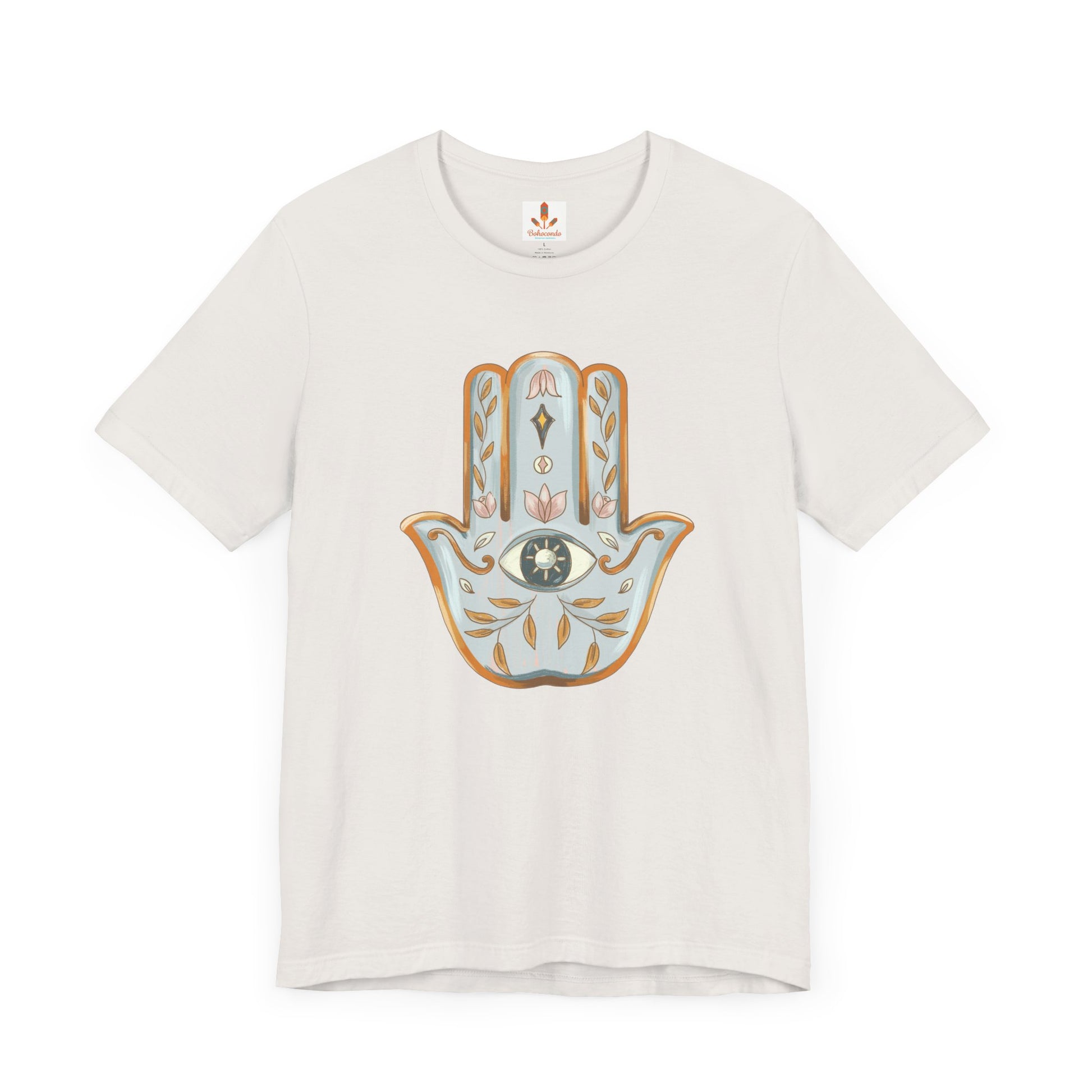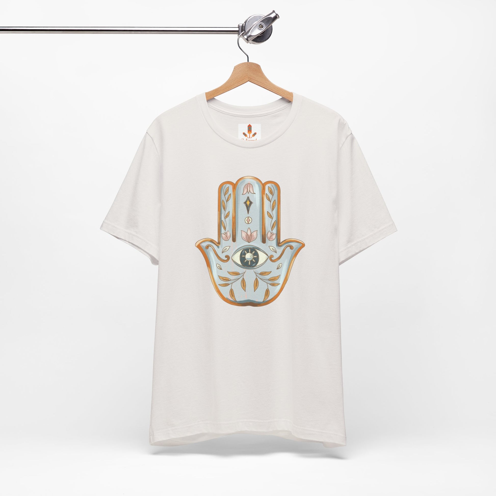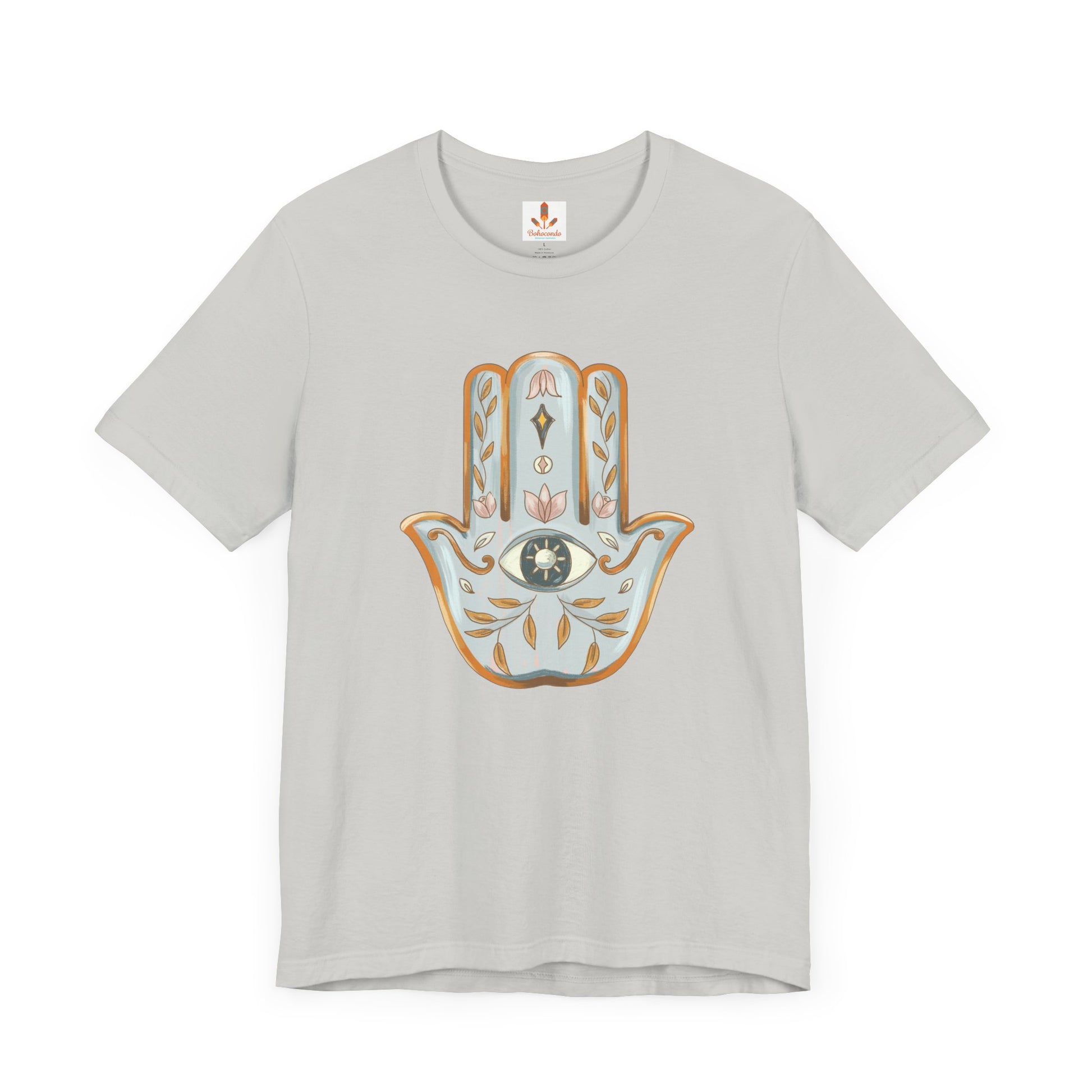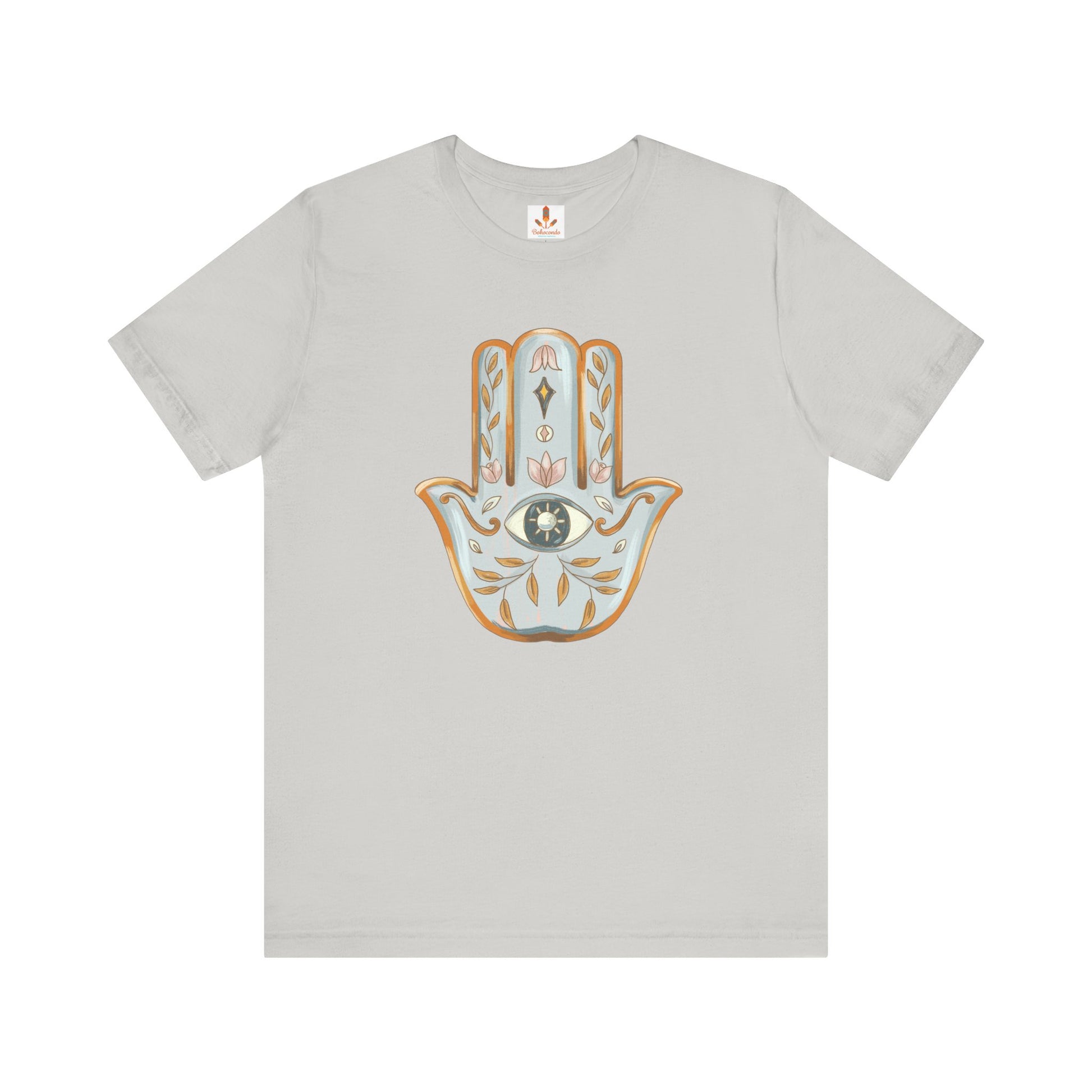 Infused with subtle shimmer and sacred meaning, the Silver Hamsa Hand T-shirt offers a modern take on a timeless symbol of protection. The elegant Hamsa hand design, rendered in soft silver tones, reflects light and positivity while aligning beautifully with your boho or spiritual wardrobe. Perfect for anyone who values mindfulness and personal style, this tee adds a calming presence to everyday outfits or intentional gatherings.