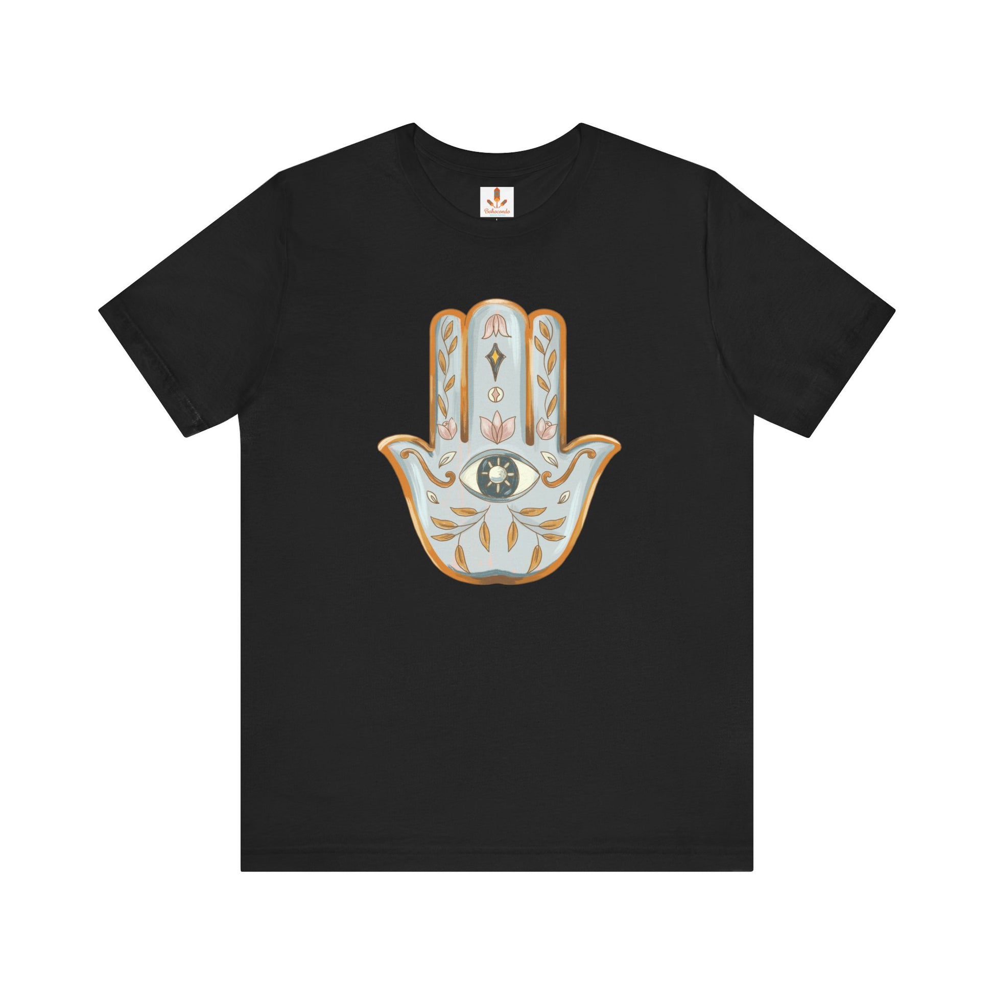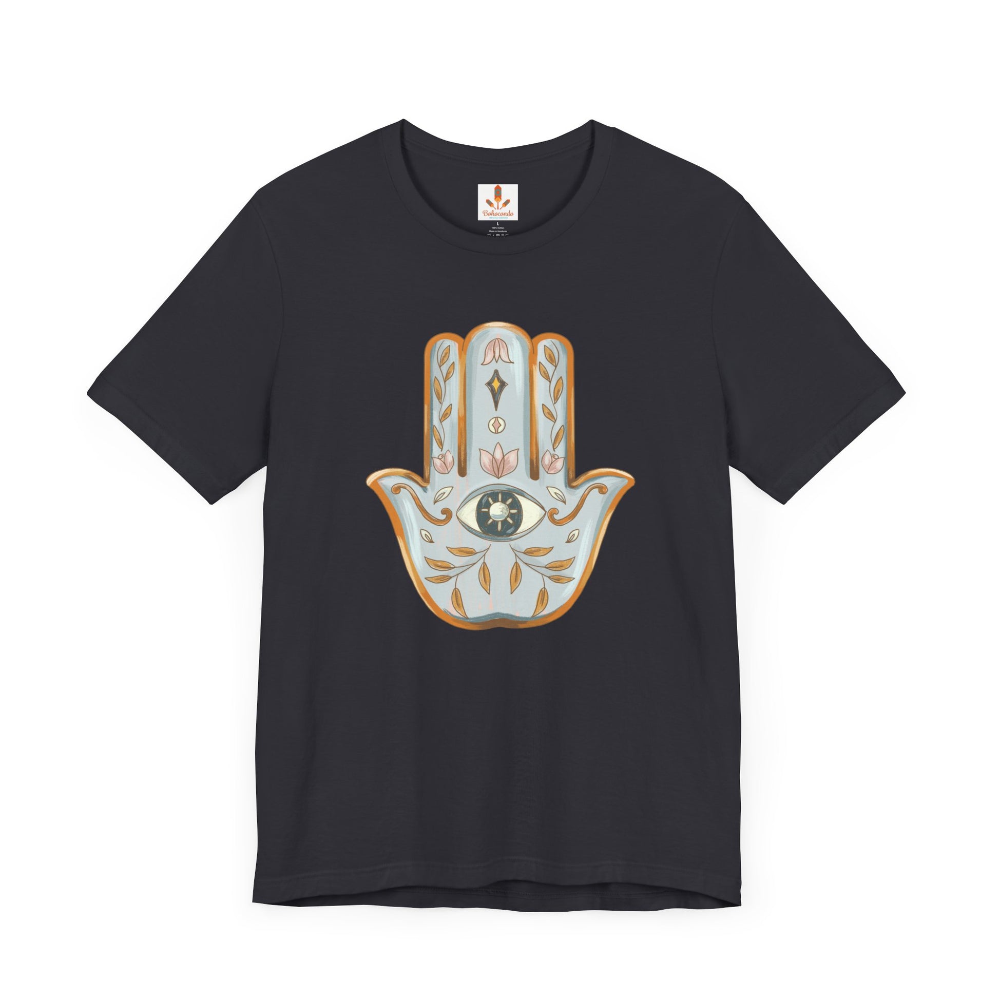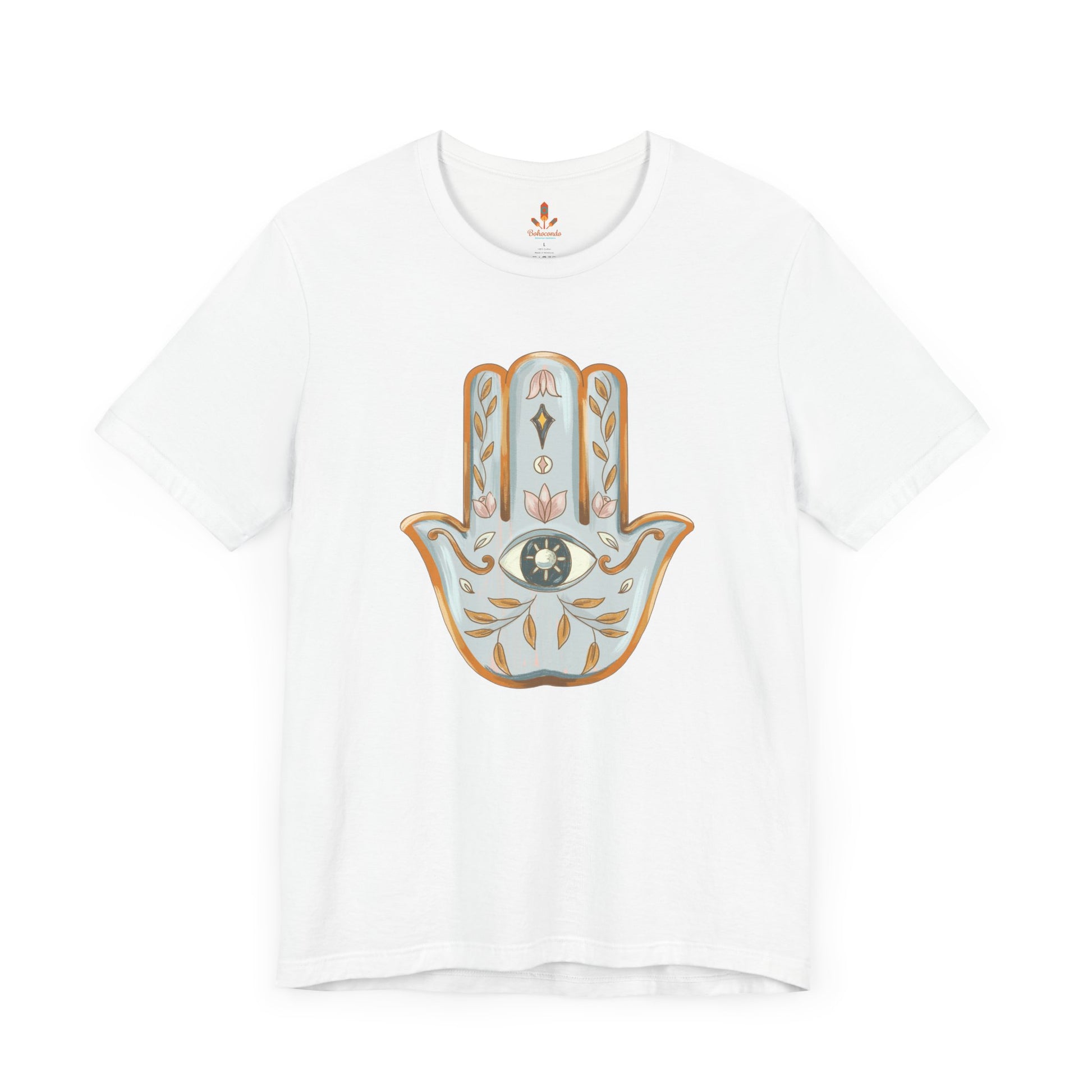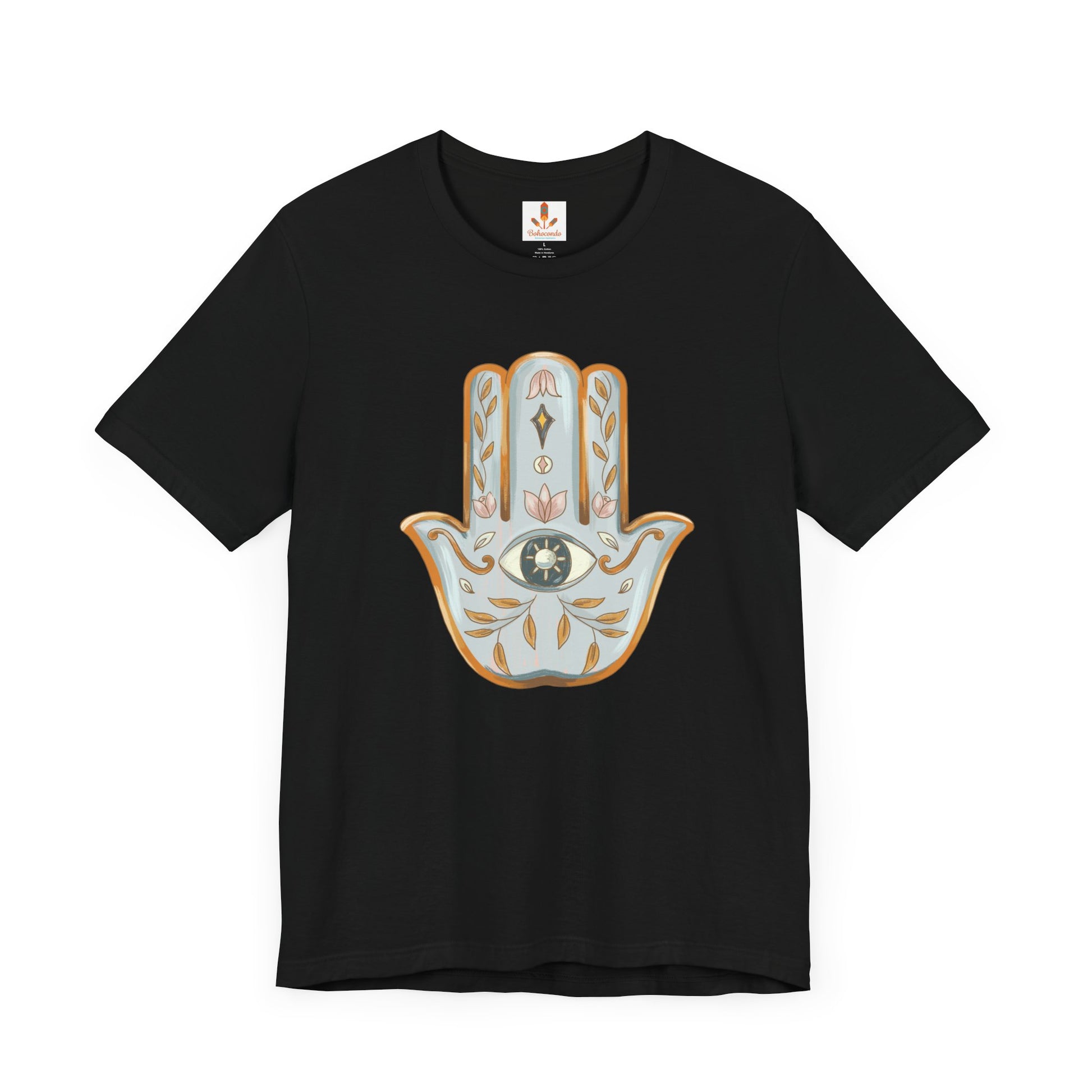 Infused with subtle shimmer and sacred meaning, the Silver Hamsa Hand T-shirt offers a modern take on a timeless symbol of protection. The elegant Hamsa hand design, rendered in soft silver tones, reflects light and positivity while aligning beautifully with your boho or spiritual wardrobe. Perfect for anyone who values mindfulness and personal style, this tee adds a calming presence to everyday outfits or intentional gatherings.