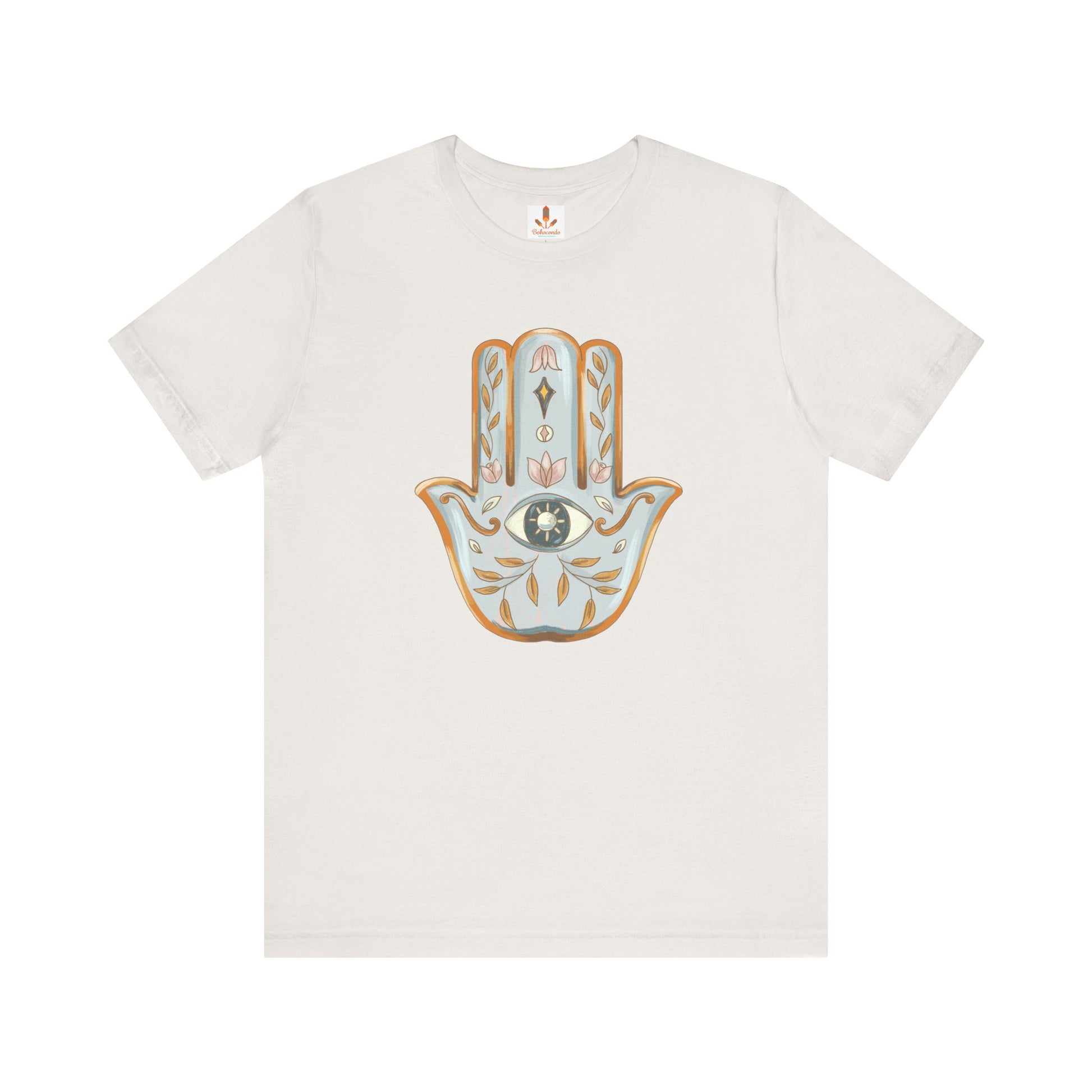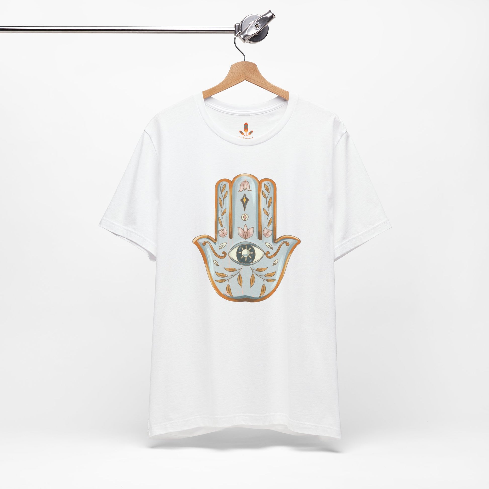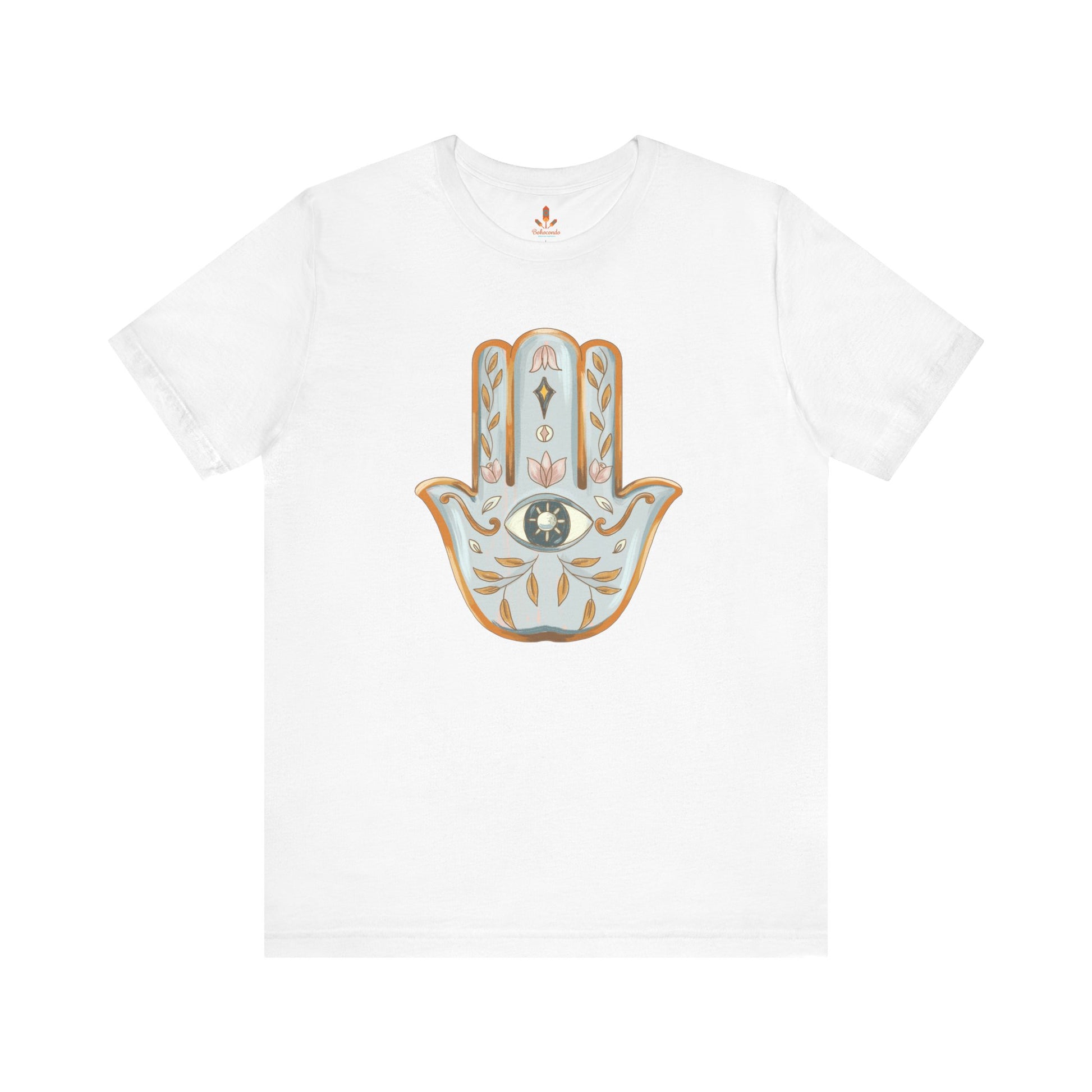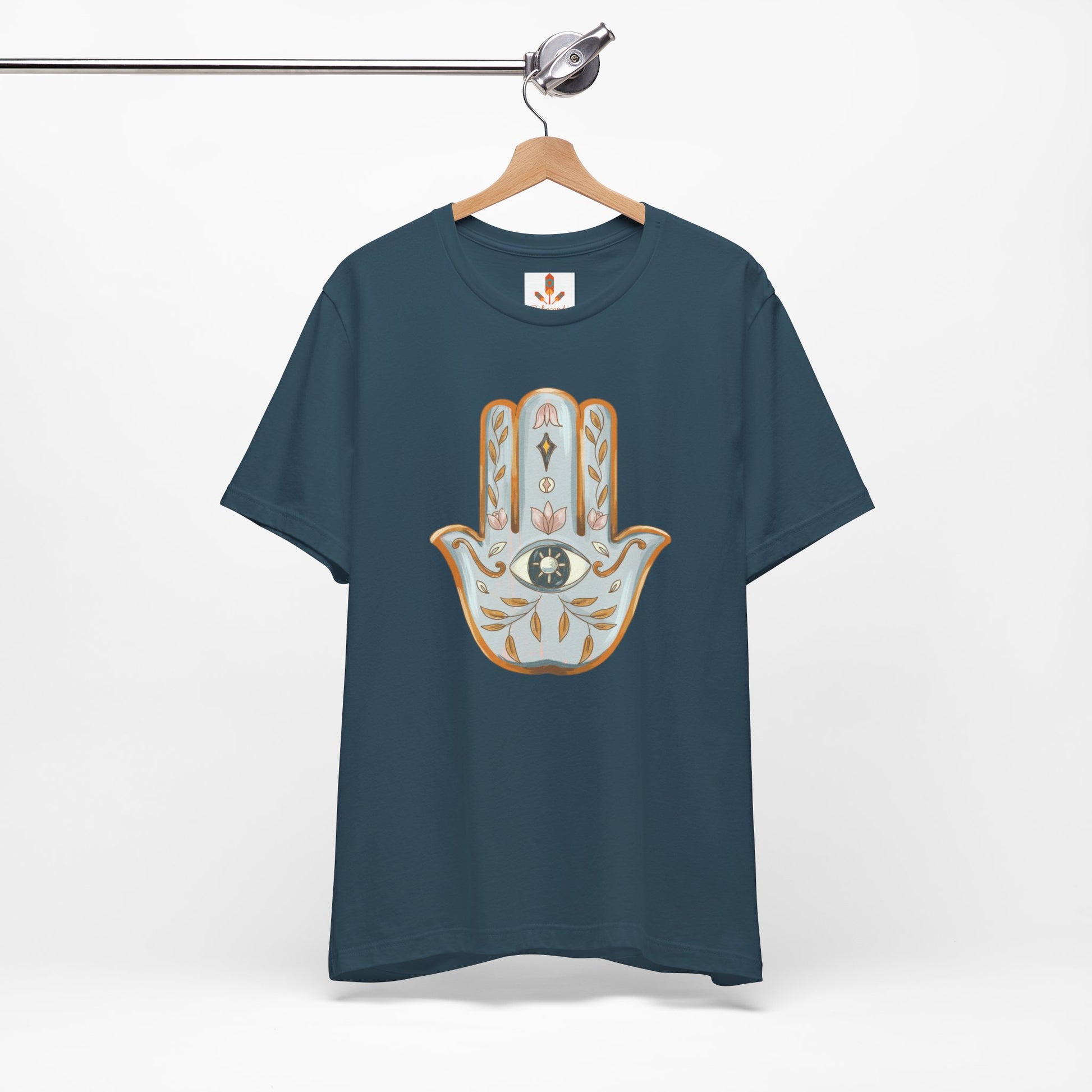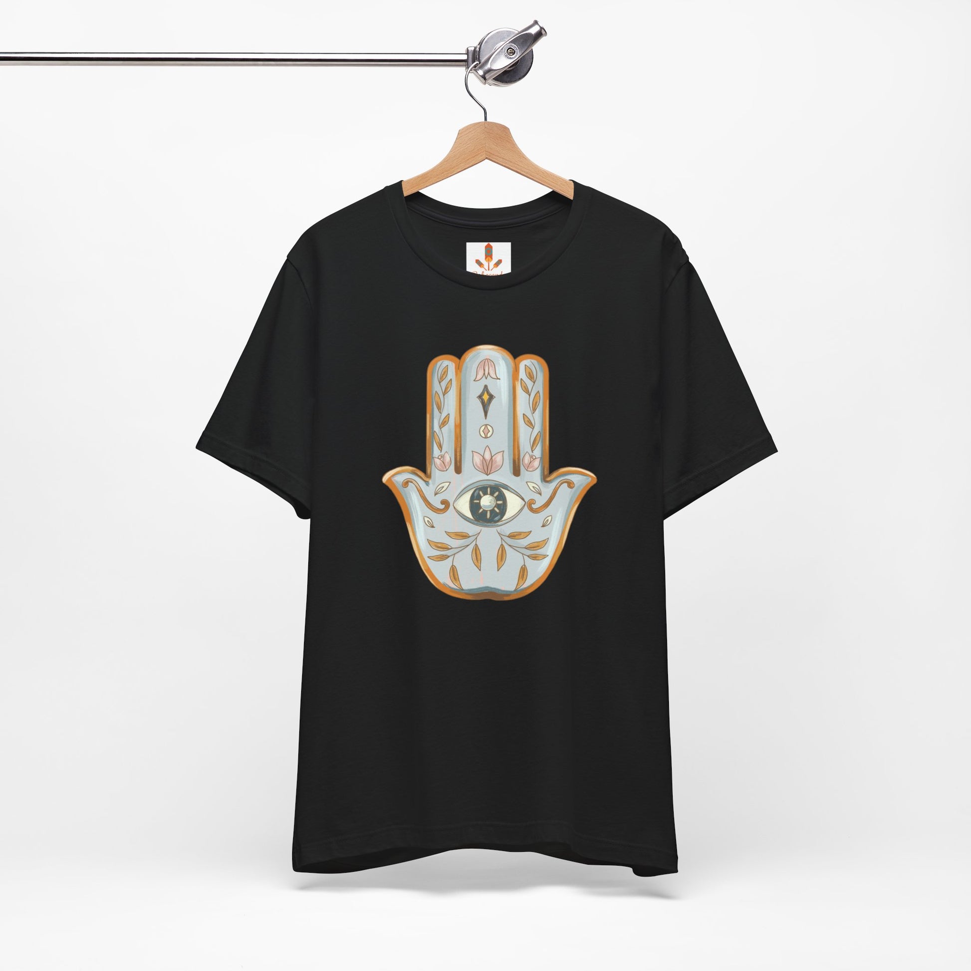 Infused with subtle shimmer and sacred meaning, the Silver Hamsa Hand T-shirt offers a modern take on a timeless symbol of protection. The elegant Hamsa hand design, rendered in soft silver tones, reflects light and positivity while aligning beautifully with your boho or spiritual wardrobe. Perfect for anyone who values mindfulness and personal style, this tee adds a calming presence to everyday outfits or intentional gatherings.