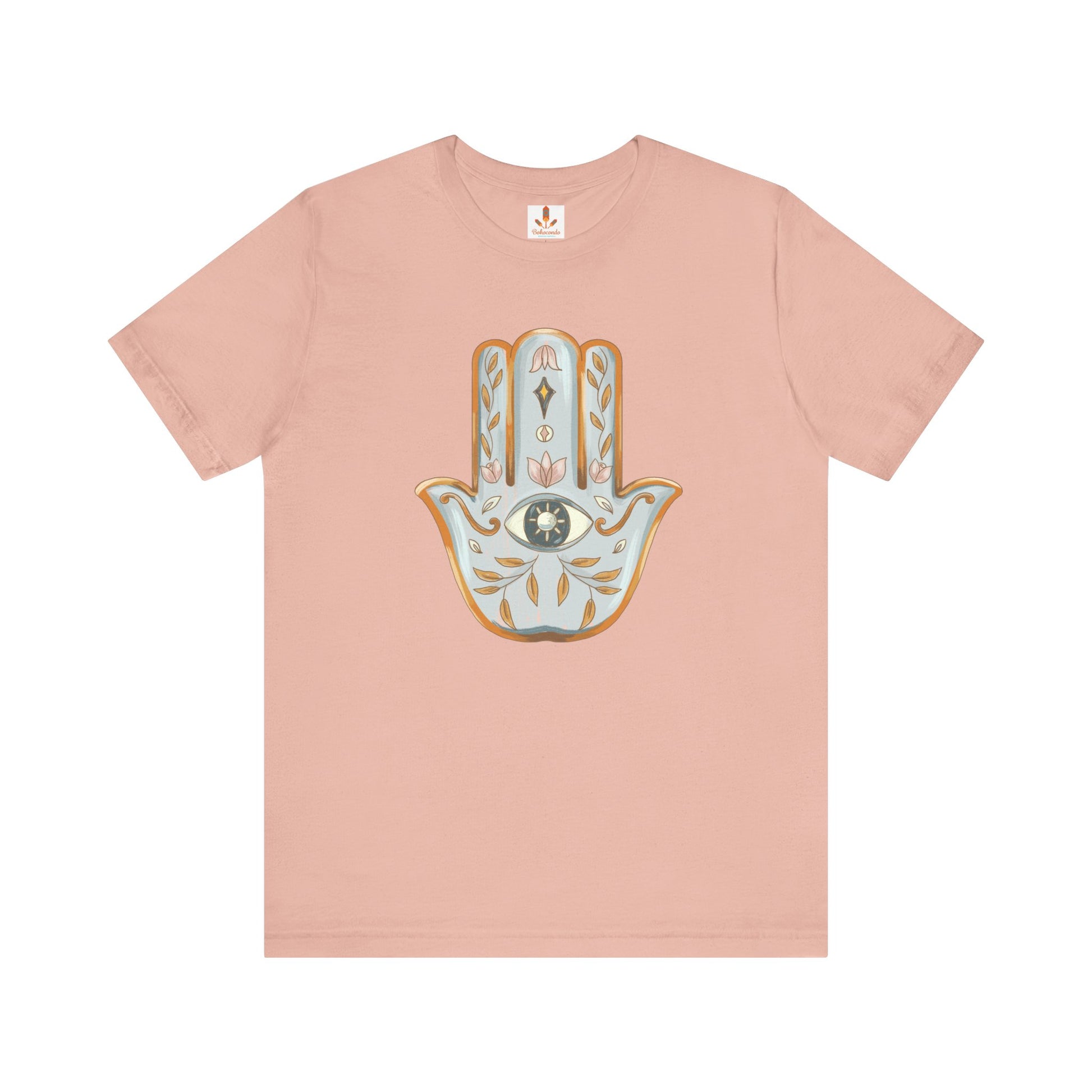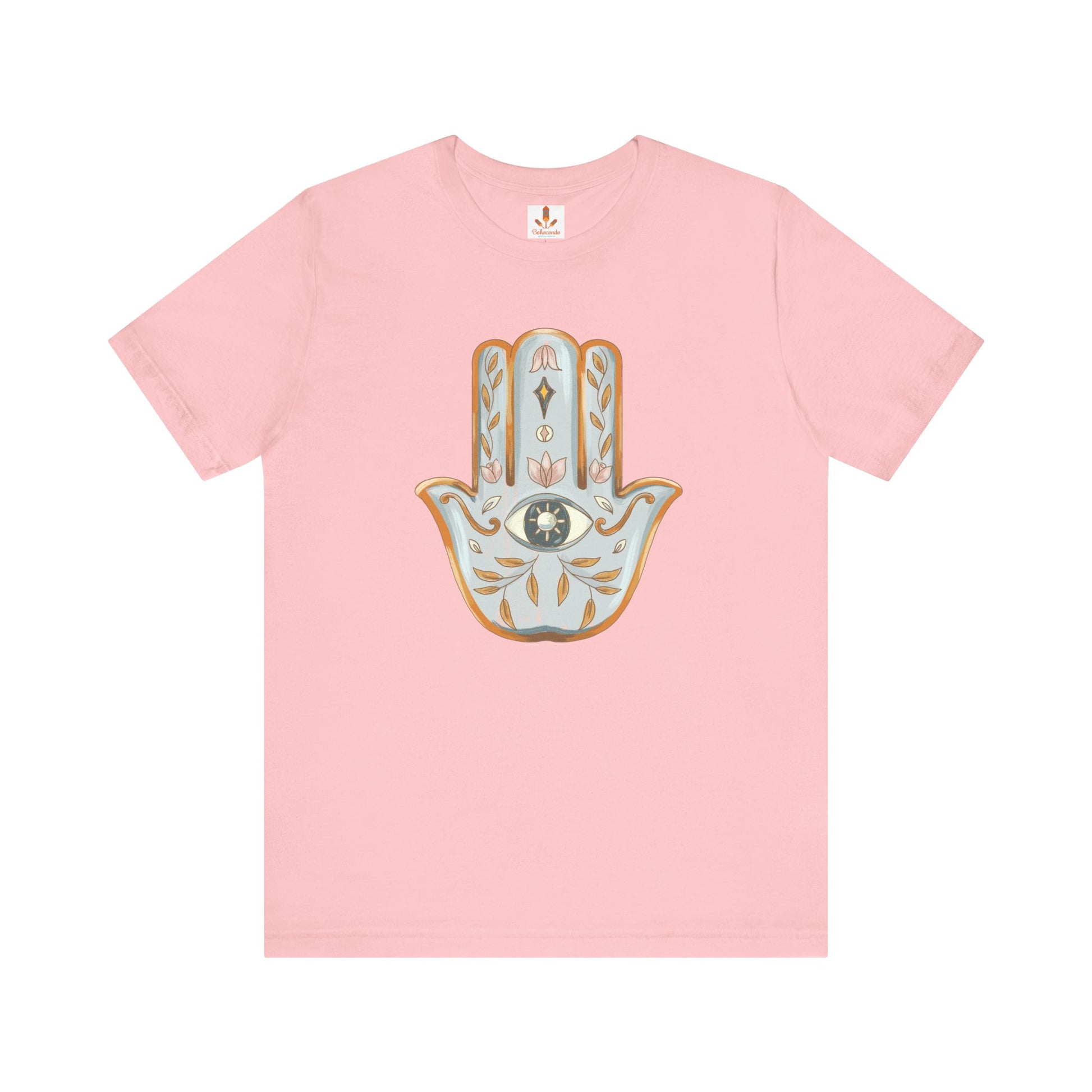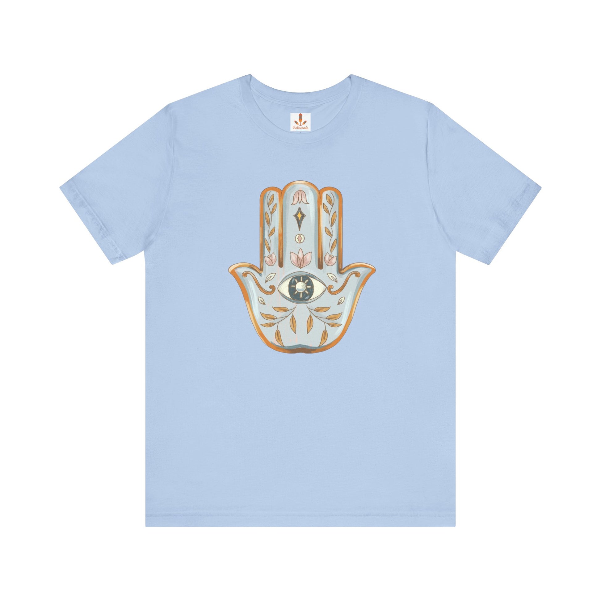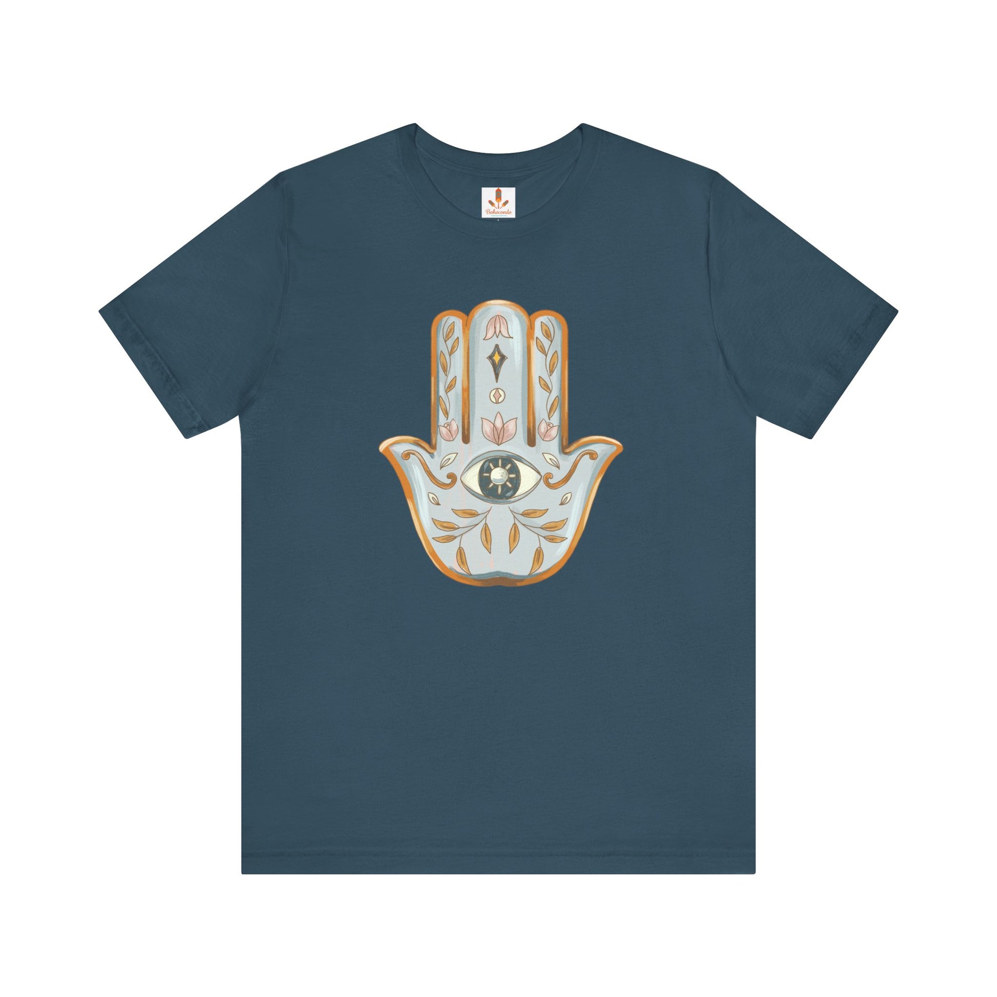Infused with subtle shimmer and sacred meaning, the Silver Hamsa Hand T-shirt offers a modern take on a timeless symbol of protection. The elegant Hamsa hand design, rendered in soft silver tones, reflects light and positivity while aligning beautifully with your boho or spiritual wardrobe. Perfect for anyone who values mindfulness and personal style, this tee adds a calming presence to everyday outfits or intentional gatherings.