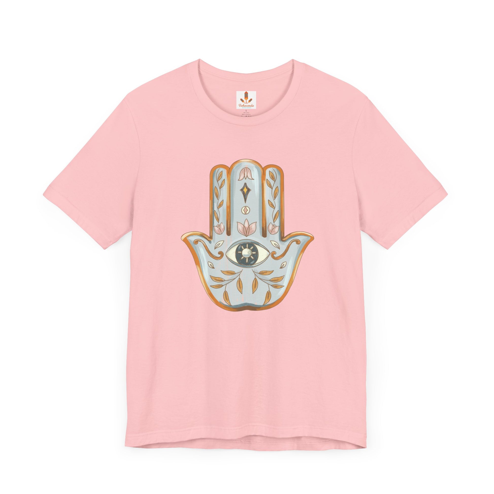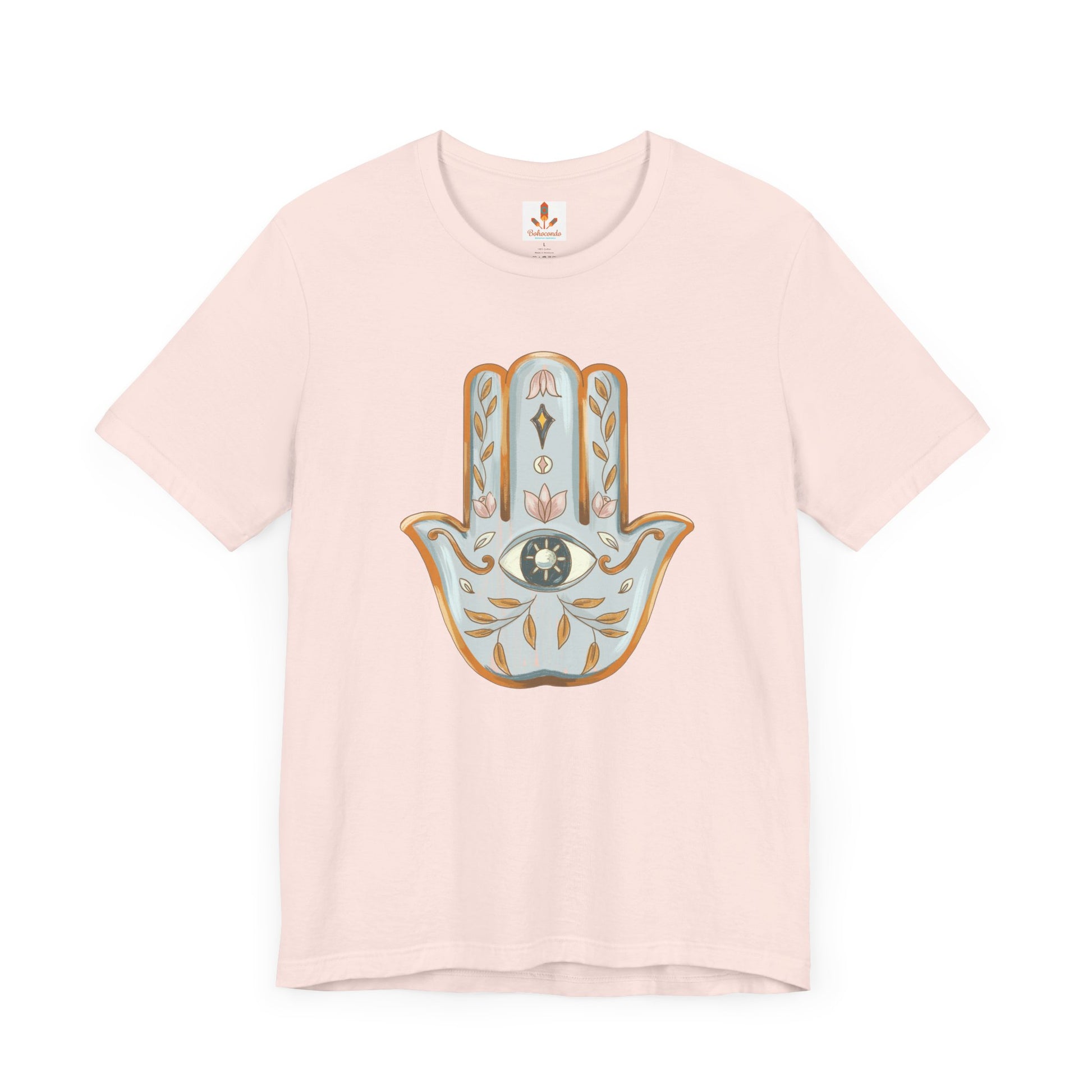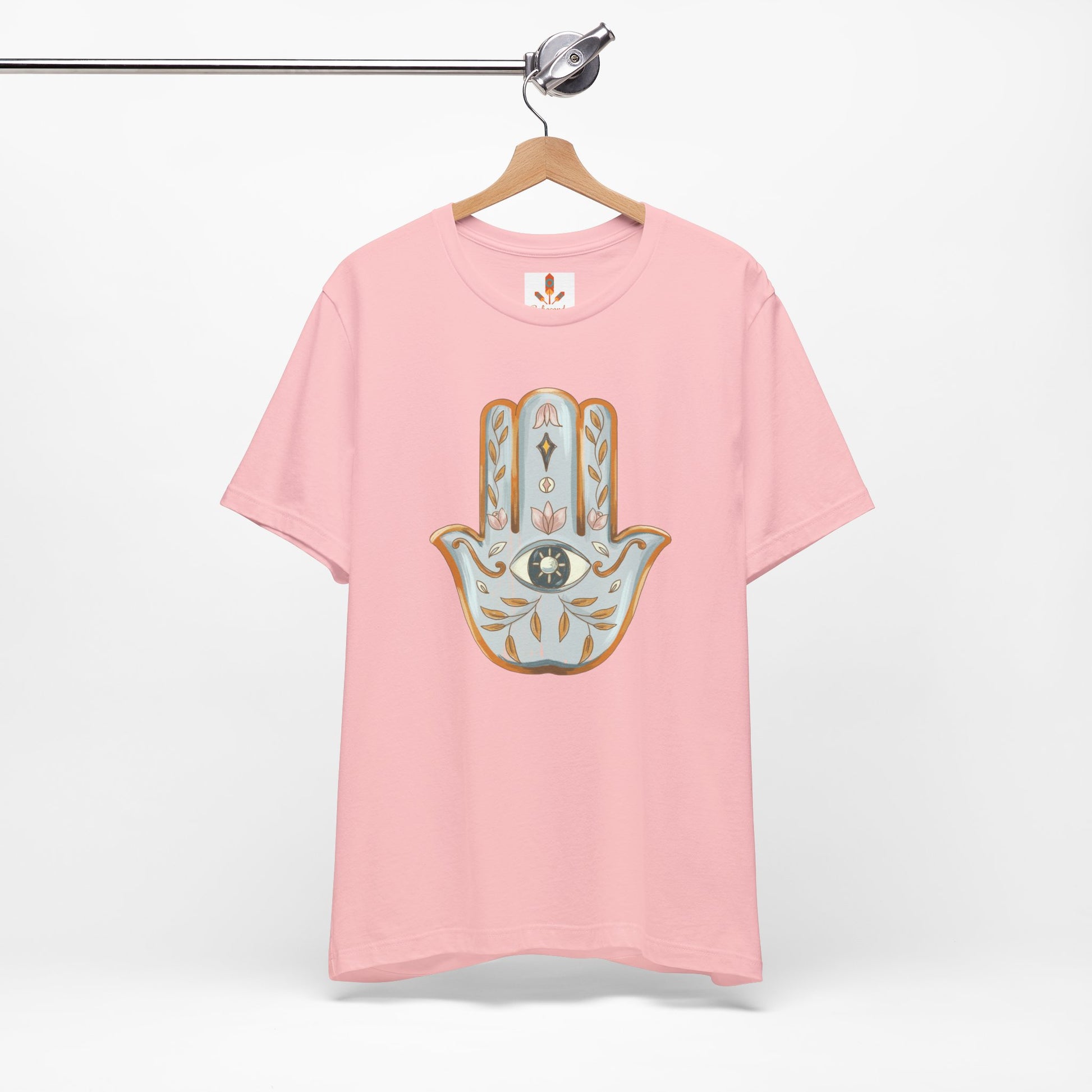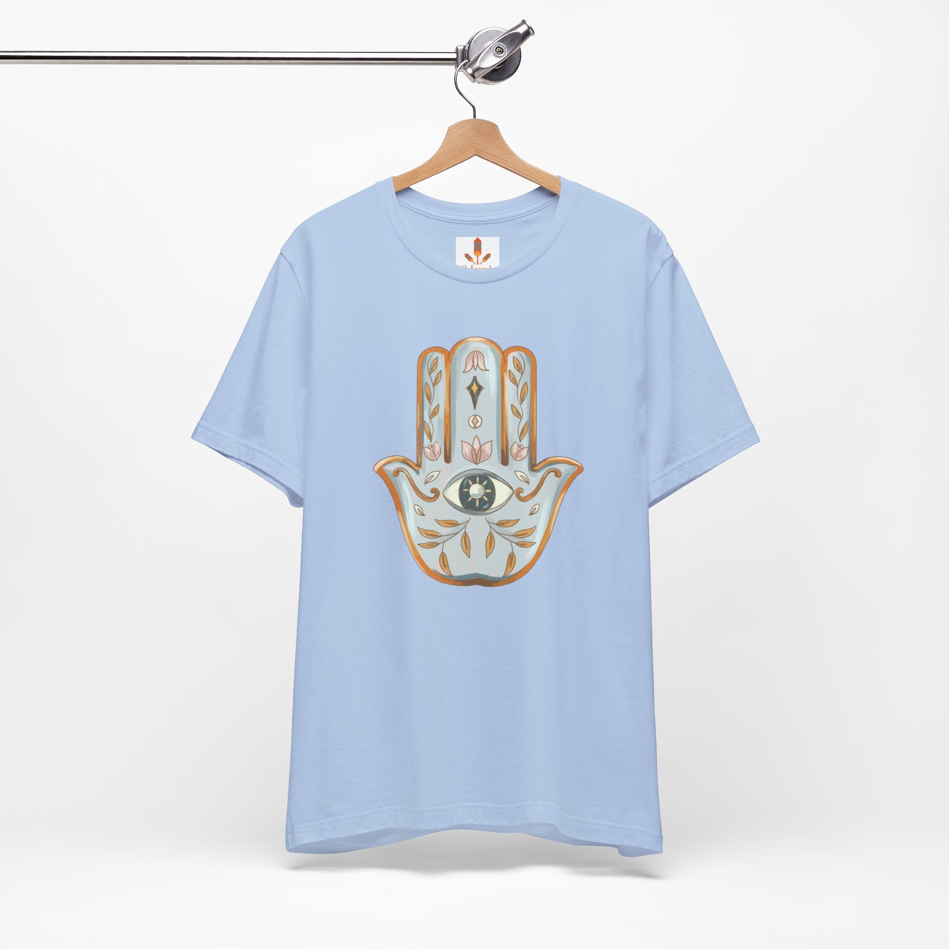 Infused with subtle shimmer and sacred meaning, the Silver Hamsa Hand T-shirt offers a modern take on a timeless symbol of protection. The elegant Hamsa hand design, rendered in soft silver tones, reflects light and positivity while aligning beautifully with your boho or spiritual wardrobe. Perfect for anyone who values mindfulness and personal style, this tee adds a calming presence to everyday outfits or intentional gatherings.