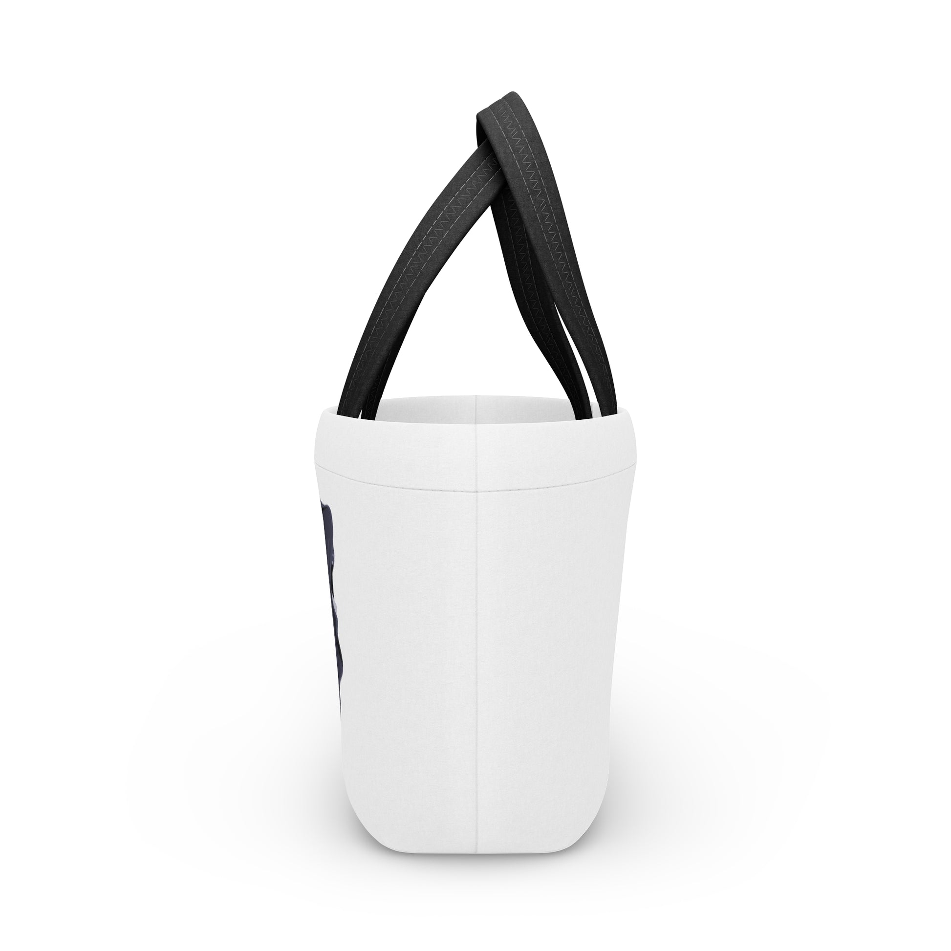 Made from 100% neoprene (95% polyester, 5% spandex), this thoughtfully crafted bohemian lunch bag features a roomy interior and curved shape with a flat base to maintain the structure of your items during travel. The high-contrast design stands out against the crisp white bag, and you can choose black or white double handles for comfort and flair.